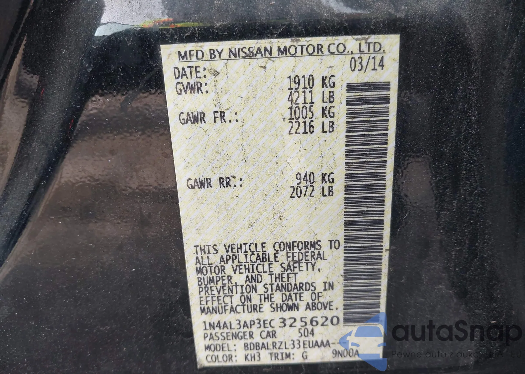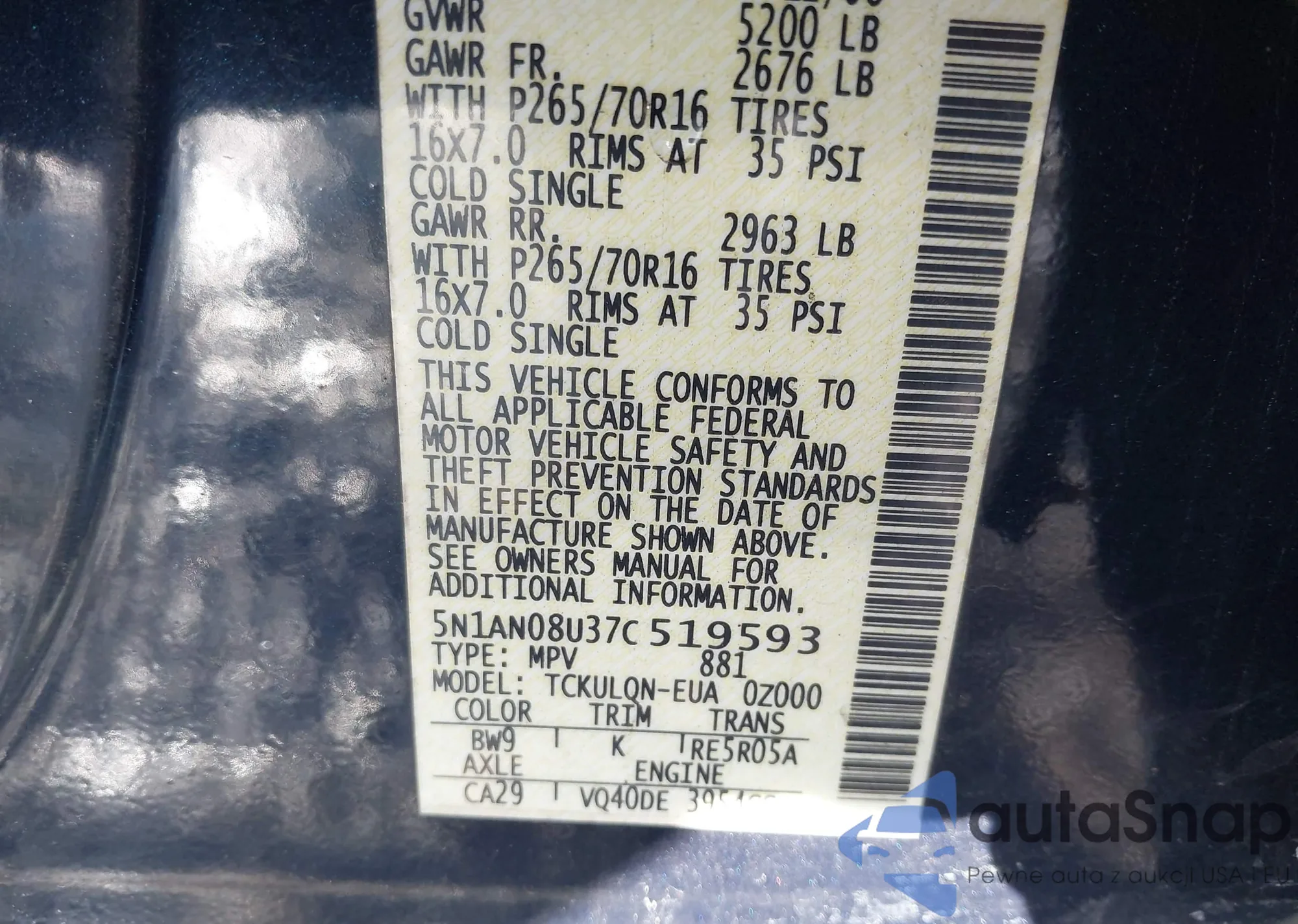 LOT: 43990421 VIN: KNDJP3A56E7007027