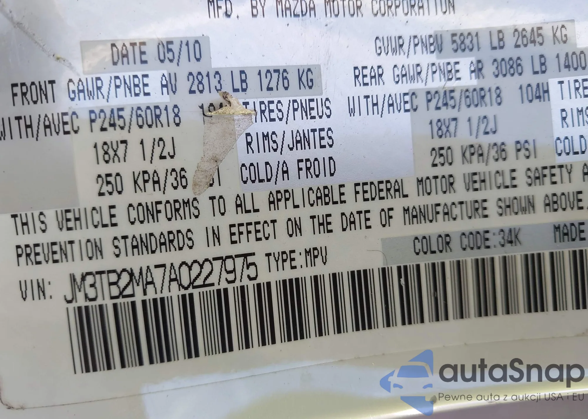 • VIN JM3TB2MA7A0227975