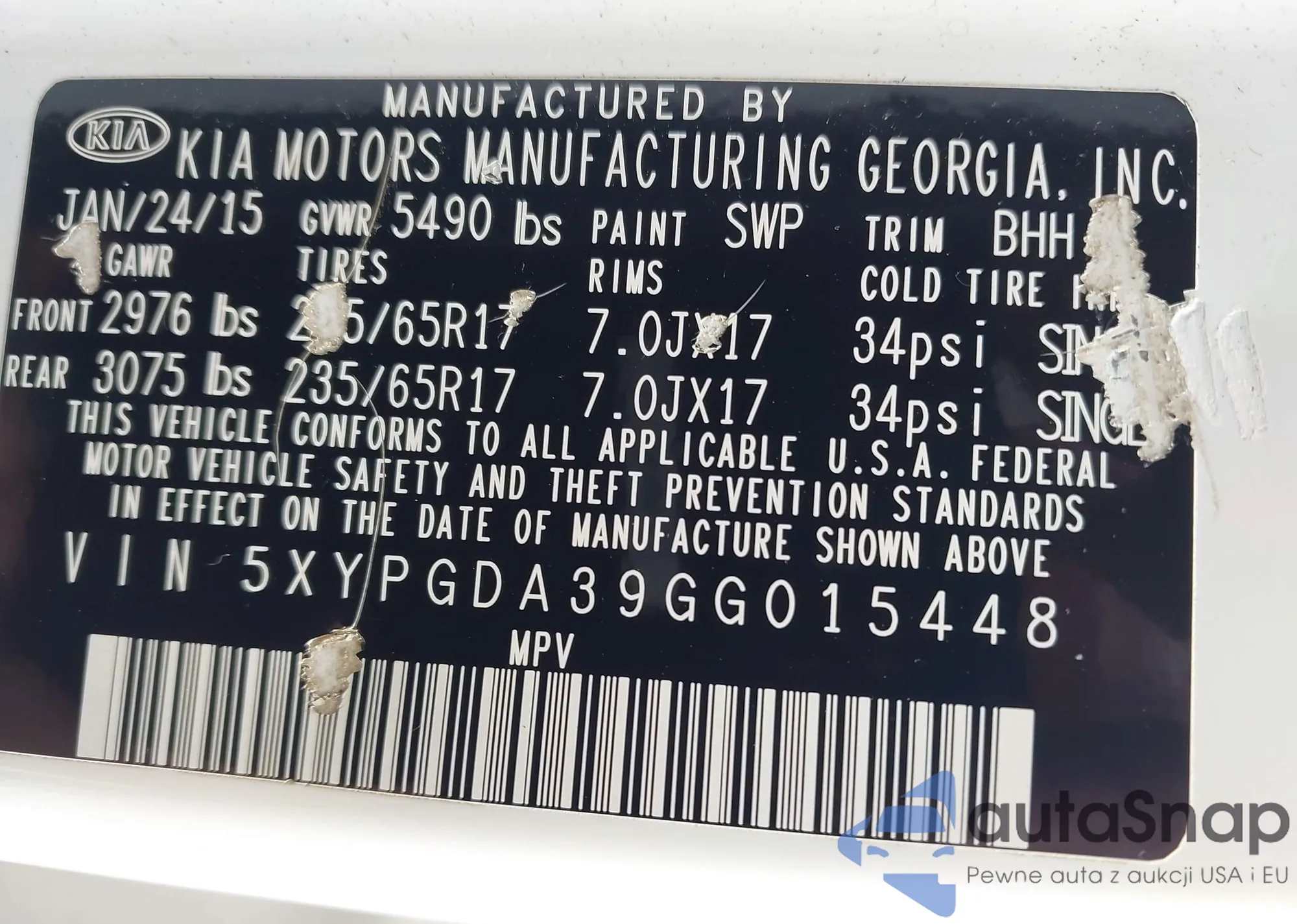 • VIN 5XYPGDA39GG015448