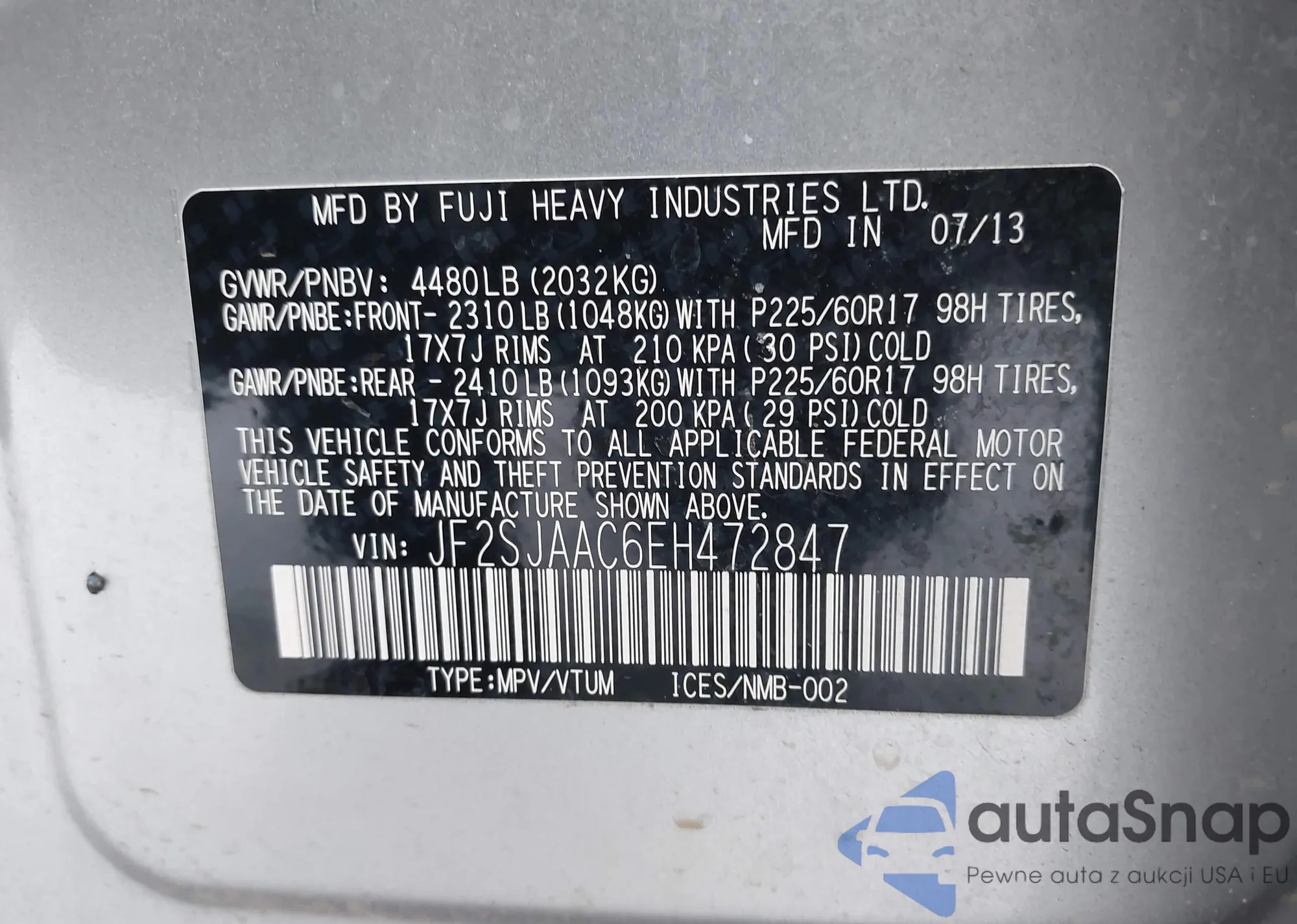 LOT: 43928024 VIN: JF2SJAAC6EH472847