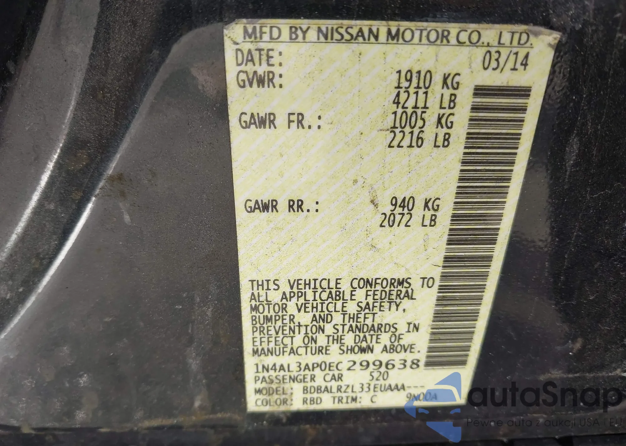 LOT: 43642151 VIN: JN8AT3CB3MW239169