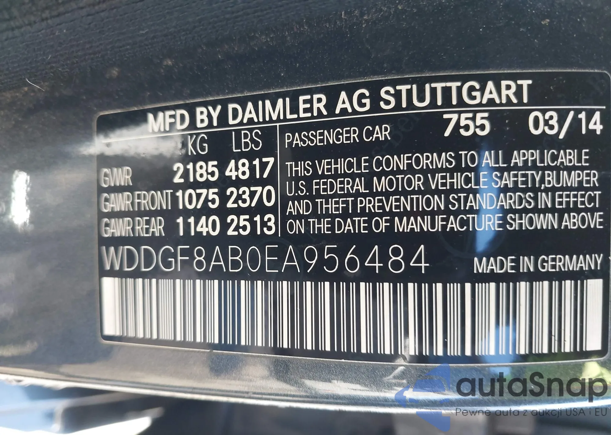 LOT: 43573831 VIN: WDDGF8AB0EA956484