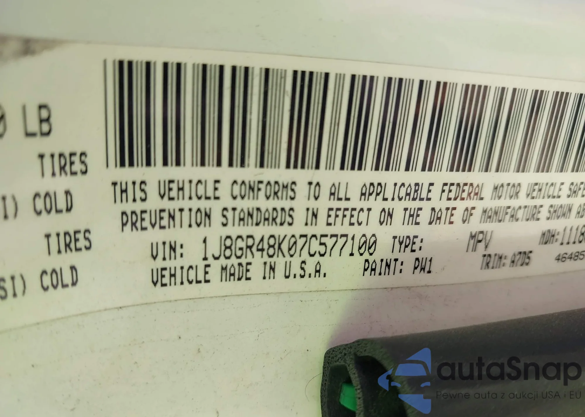 LOT: 43187761 VIN: 1J8GR48K07C577100