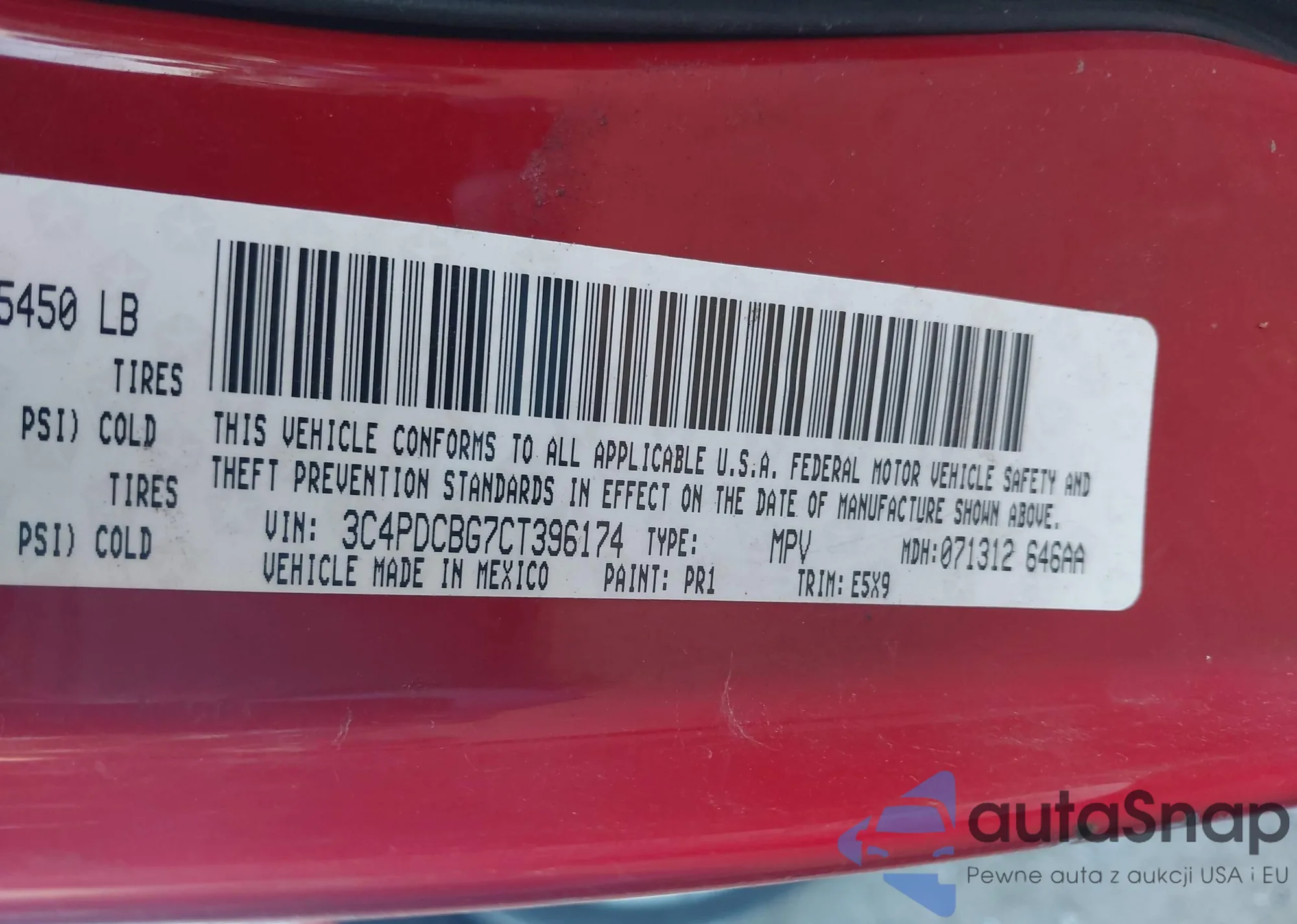 LOT: 43523585 VIN: 3C4PDCBG7CT396174