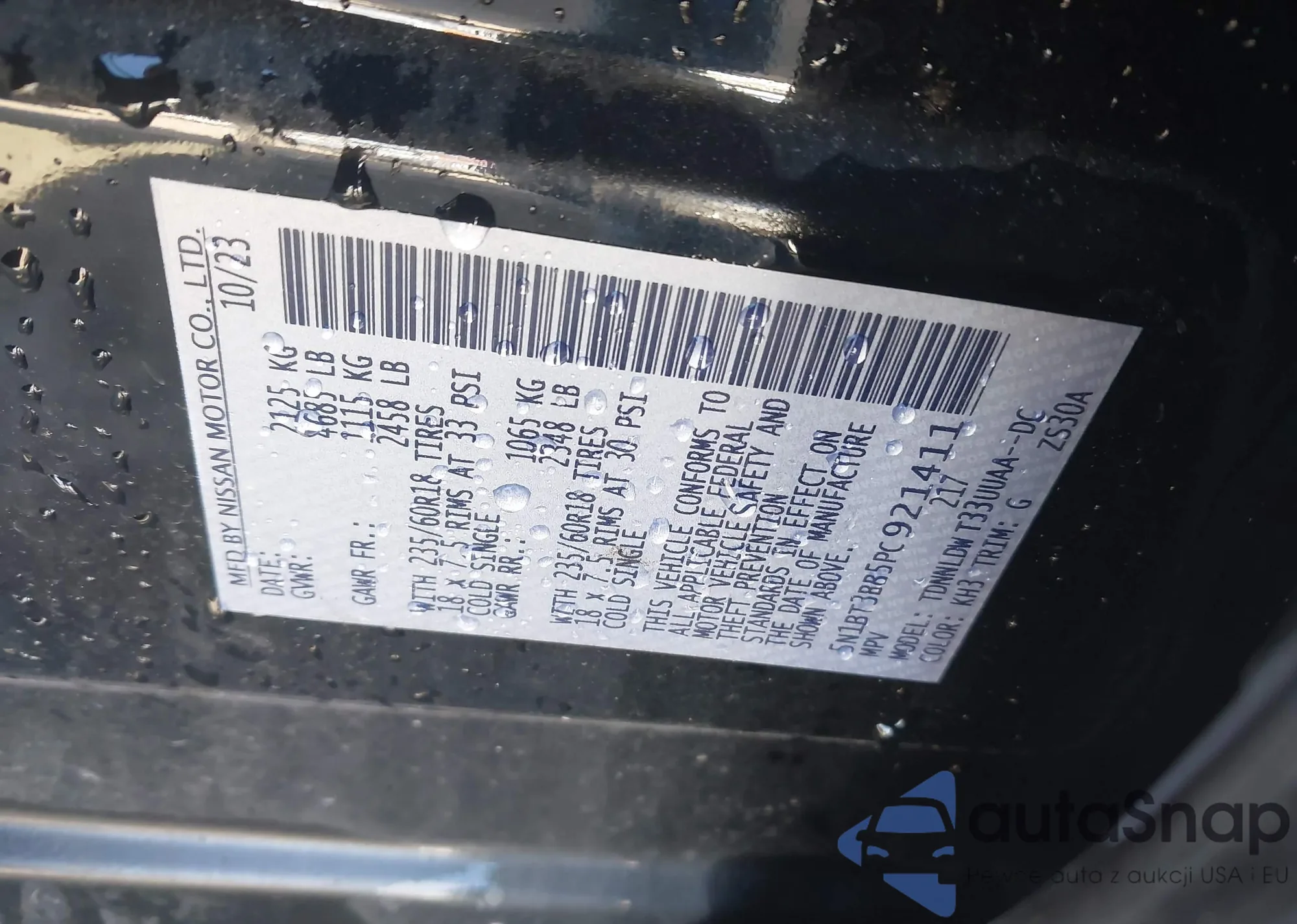 LOT: 43537681 VIN: 5N1BT3BB5PC921411