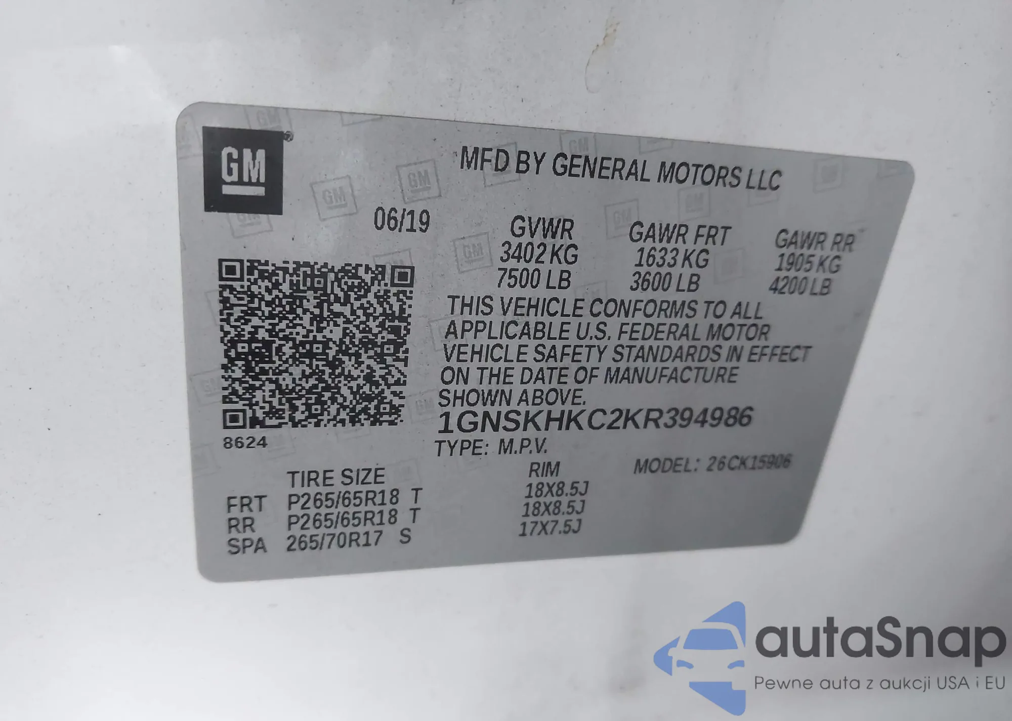 LOT: 43694375 VIN: 1GNSKHKC2KR394986