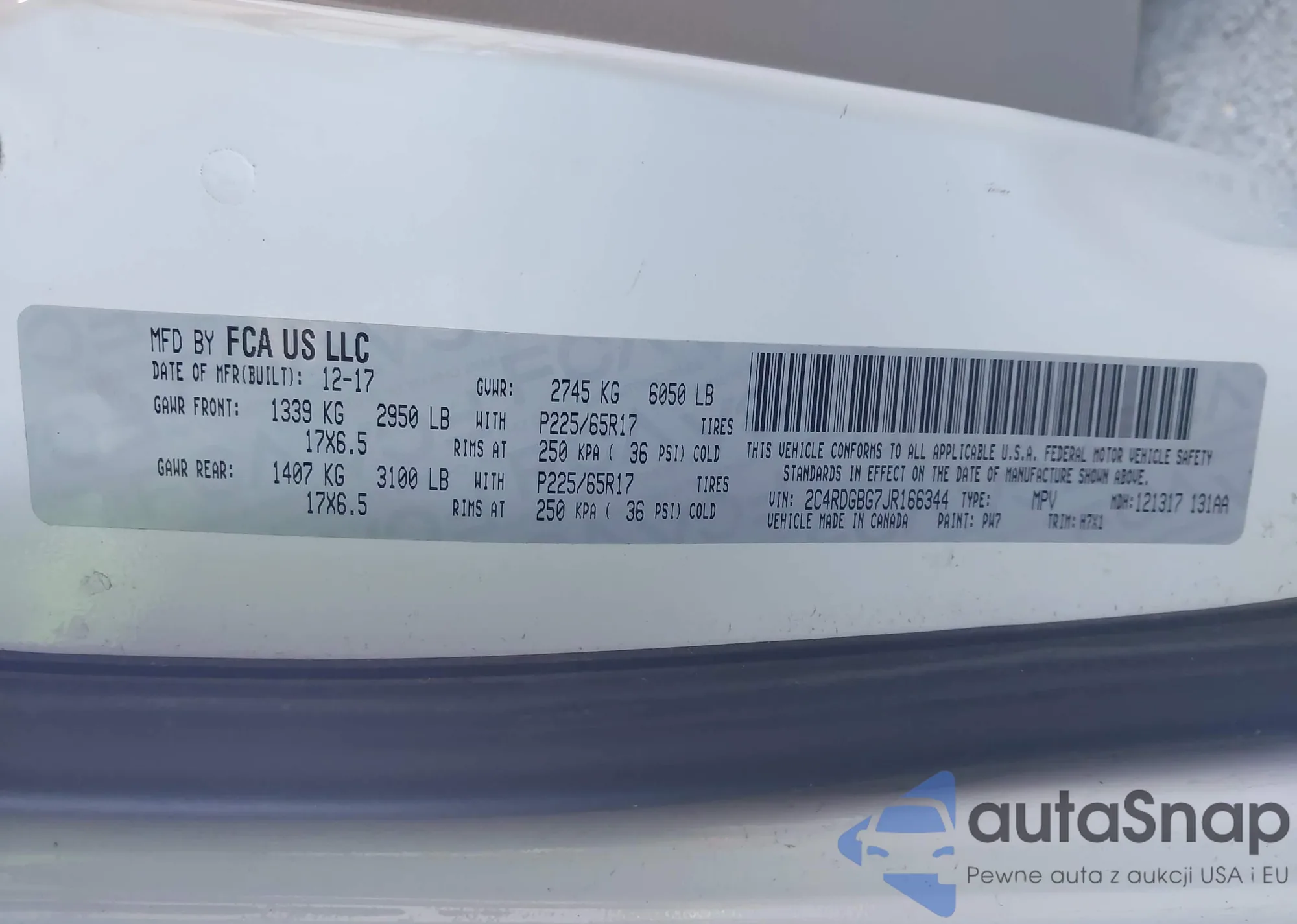 • VIN 2C4RDGBG7JR166344