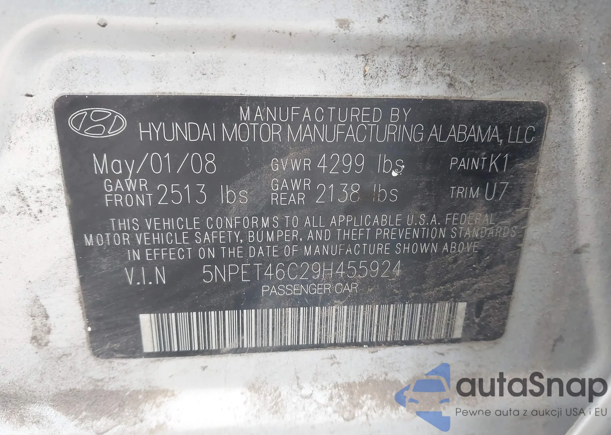 LOT: 43717661 VIN: 5NPET46C29H455924
