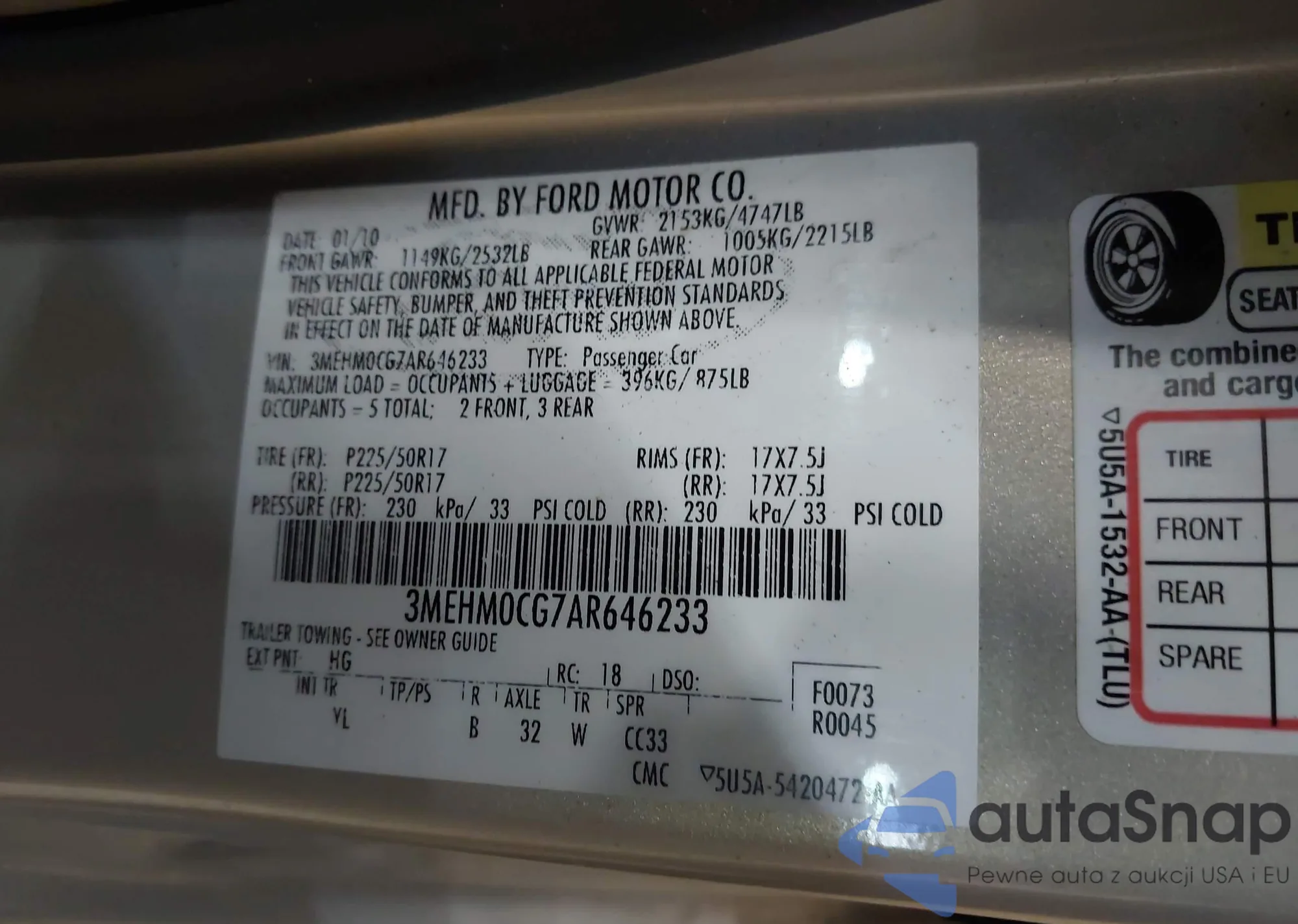 2010 Mercury Milan Premier из США, поврежденный, VIN 3MEHM0CG7AR646233