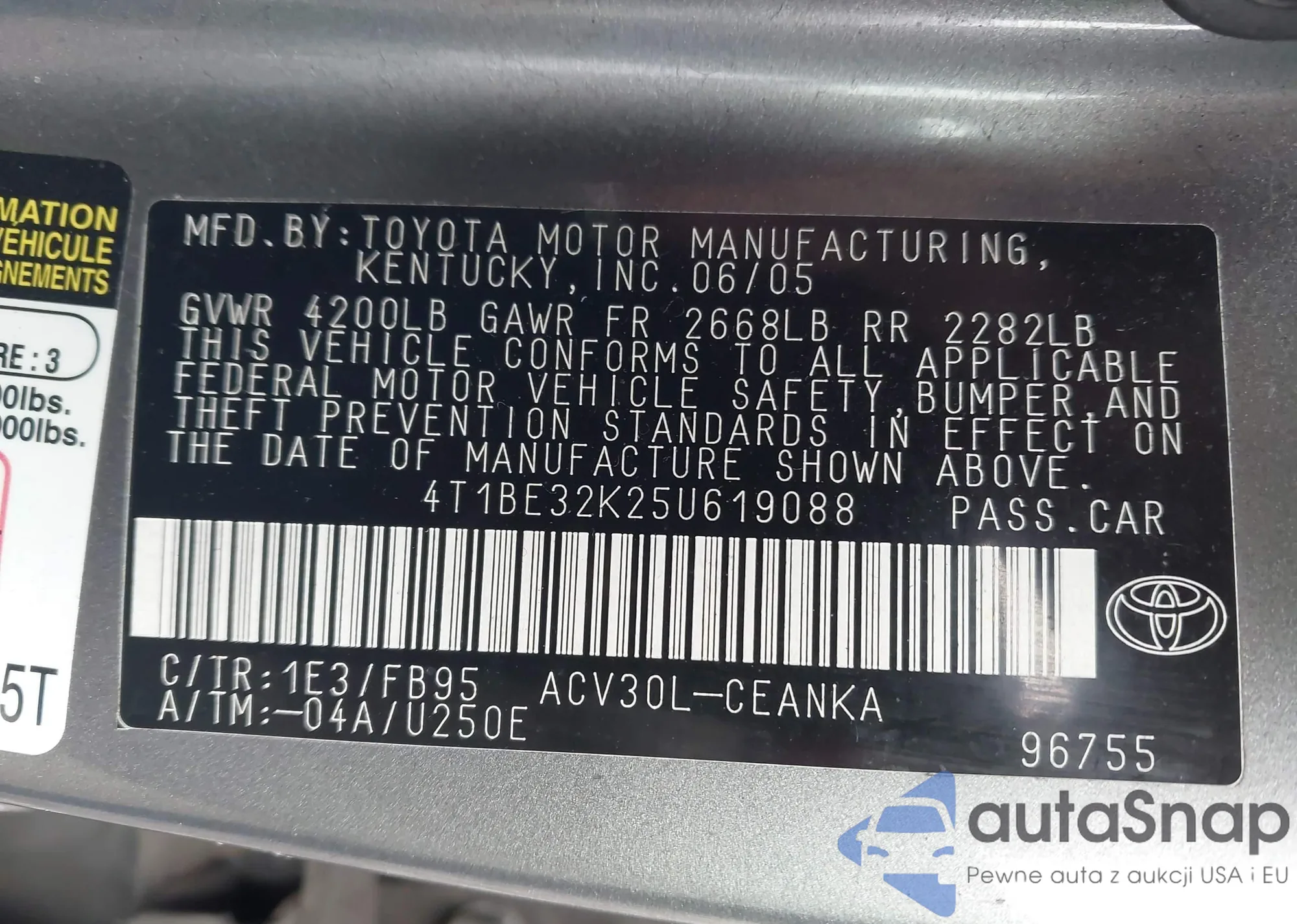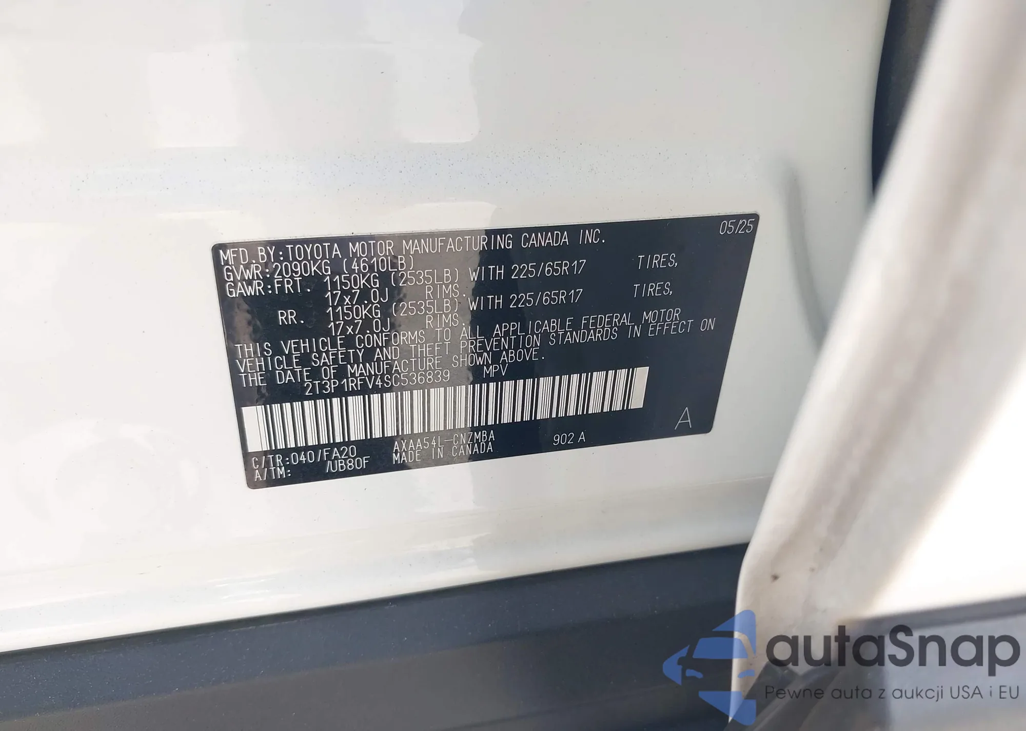 • VIN 2T3P1RFV4SC536839