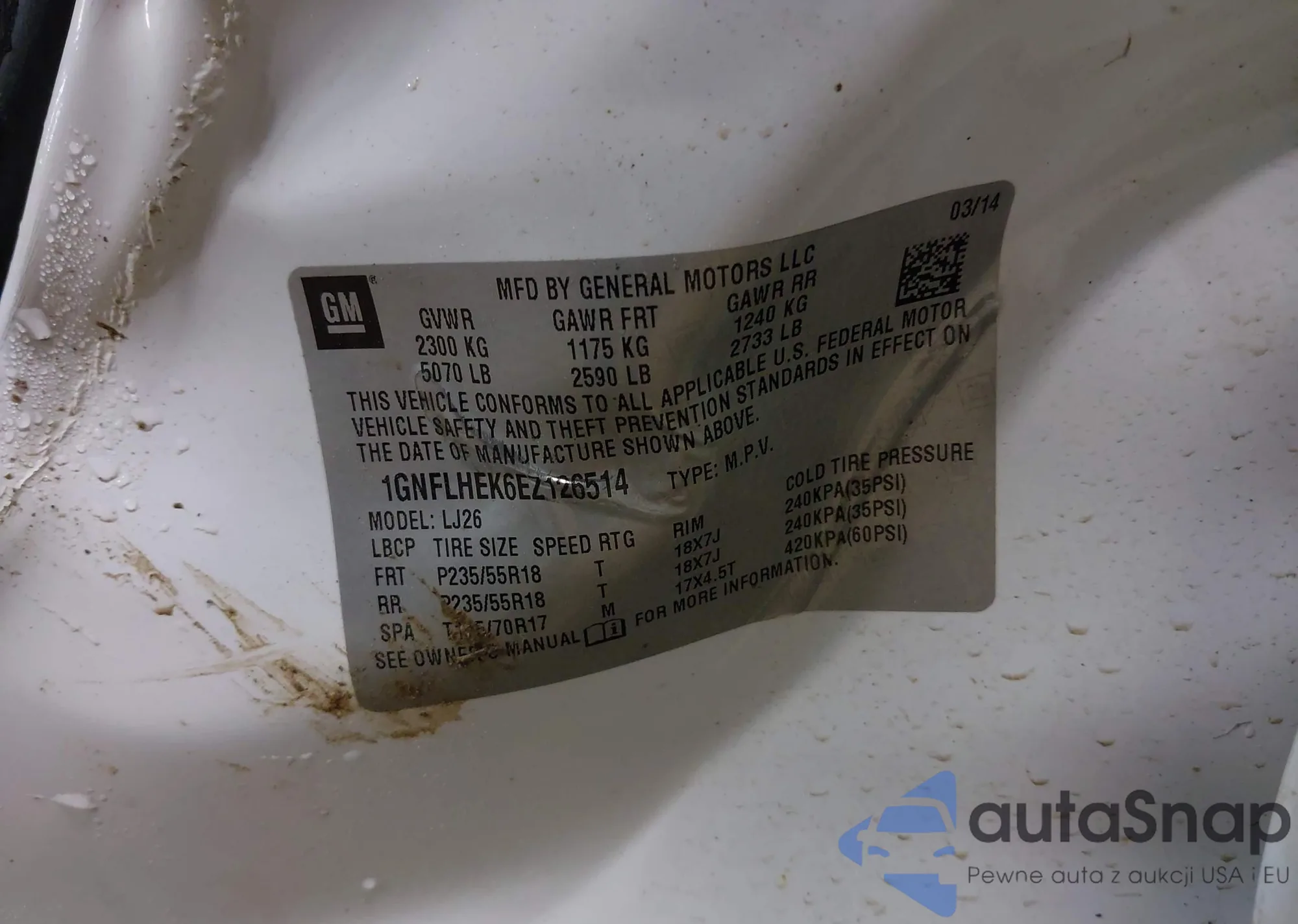 LOT: 44141564 VIN: 1GTSKVE39AZ211102