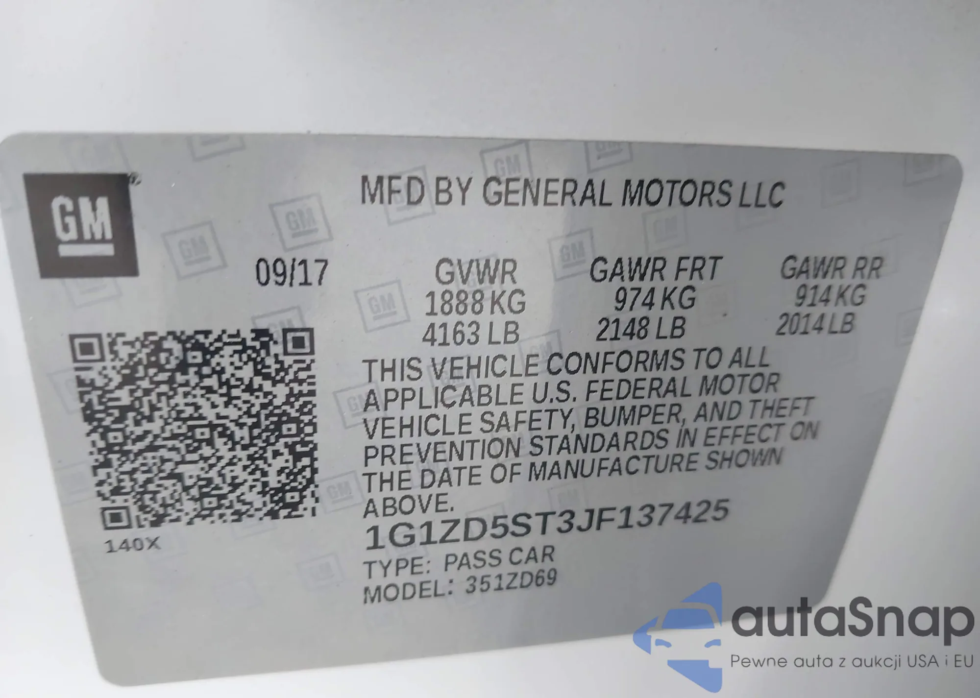 LOT: 44168438 VIN: 1G1ZD5ST3JF137425
