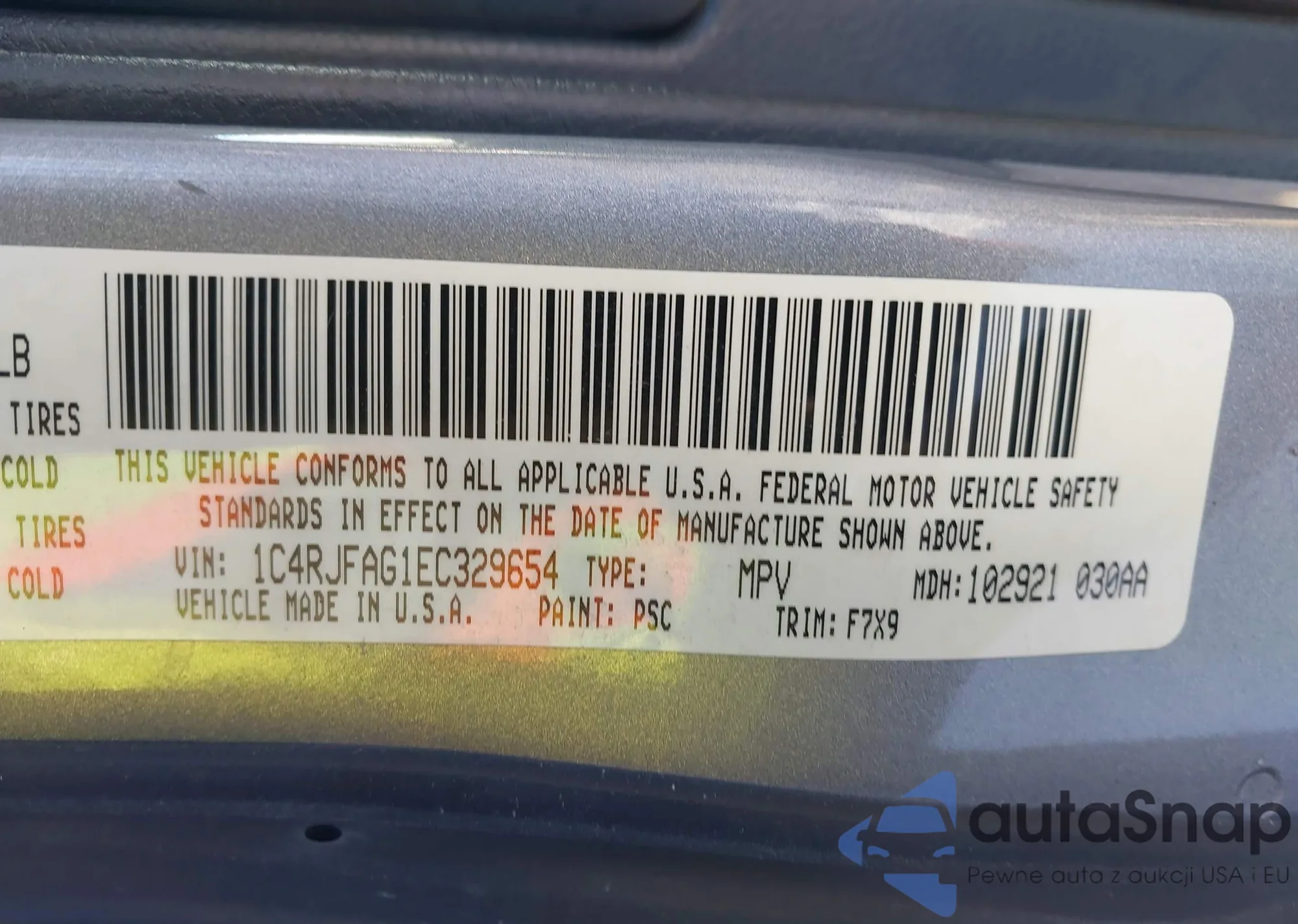 • VIN 1C4RJFAG1EC329654