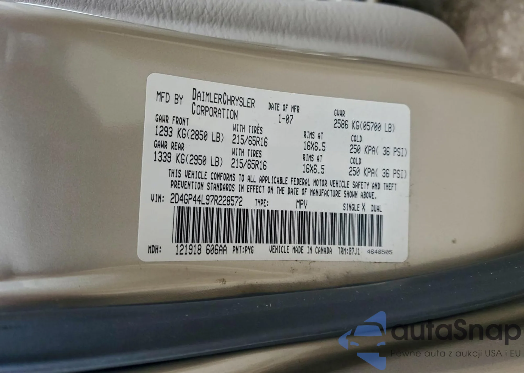 LOT: 65807535 VIN: KNDJF724X57085181