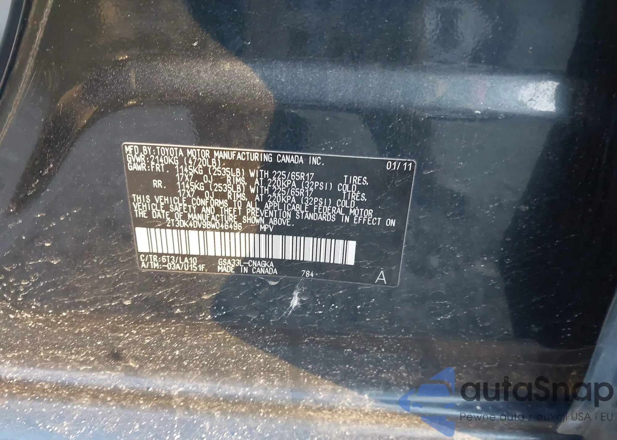 LOT: 44068858 VIN: 2T3DK4DV9BW046496