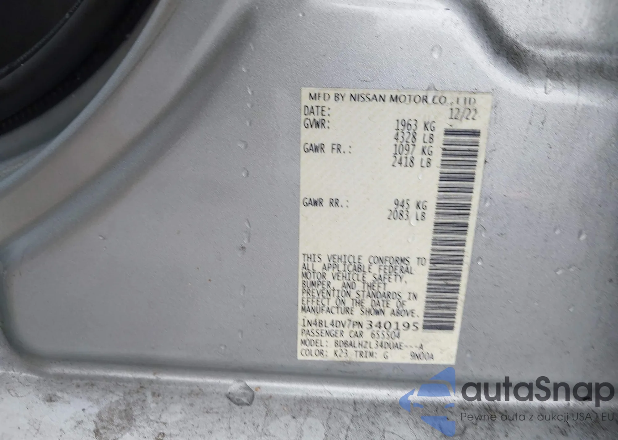• VIN 3N1AB8DV8RY381332