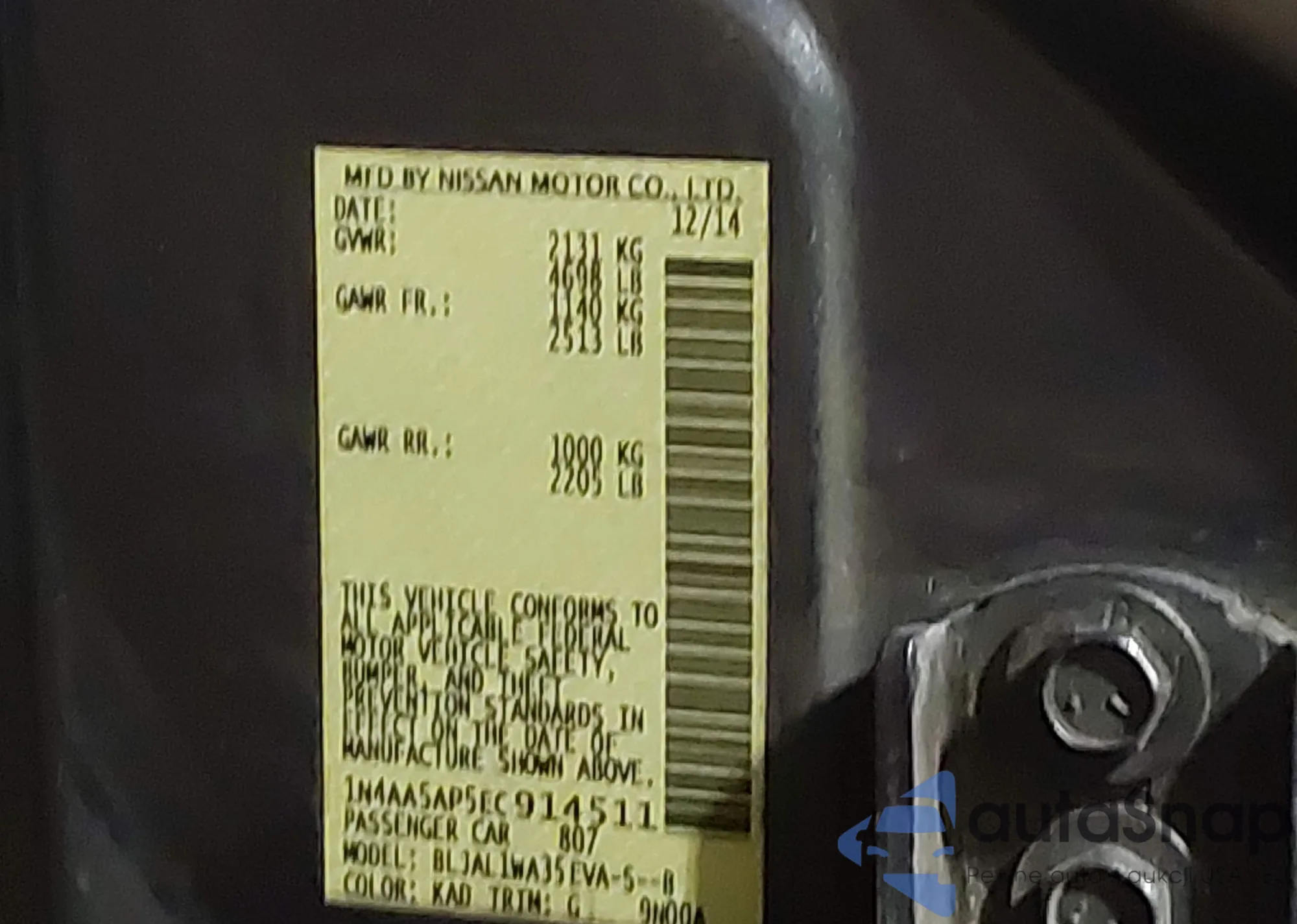• VIN 1N4AA5AP5EC914511