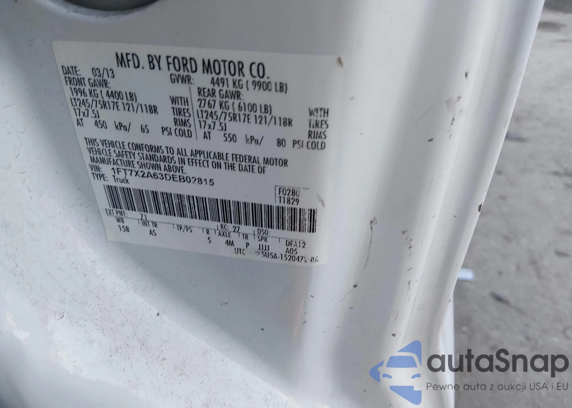 • VIN 1FT7X2A63DEB02815