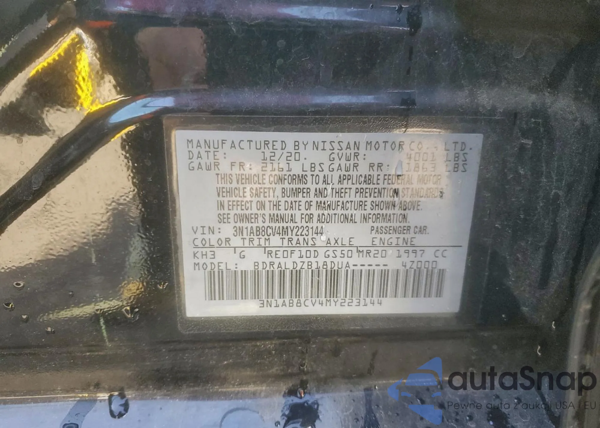 • VIN 3N1AB8CV4MY223144