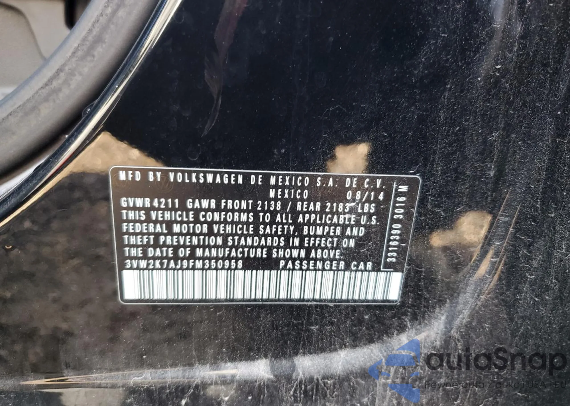 • VIN 3VW2K7AJ9FM350958