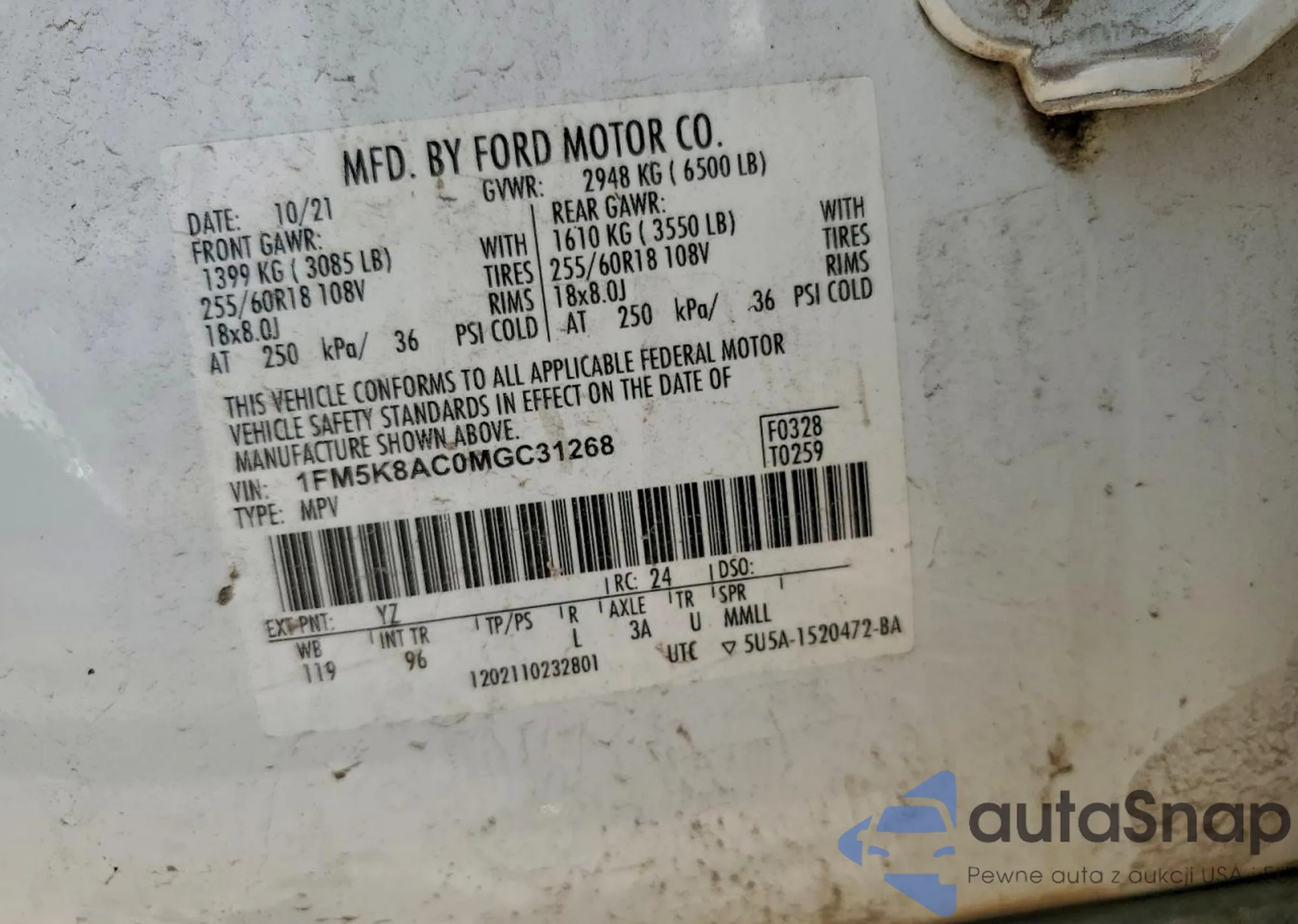 LOT: 91039965 VIN: 1FM5K8AC0MGC31268