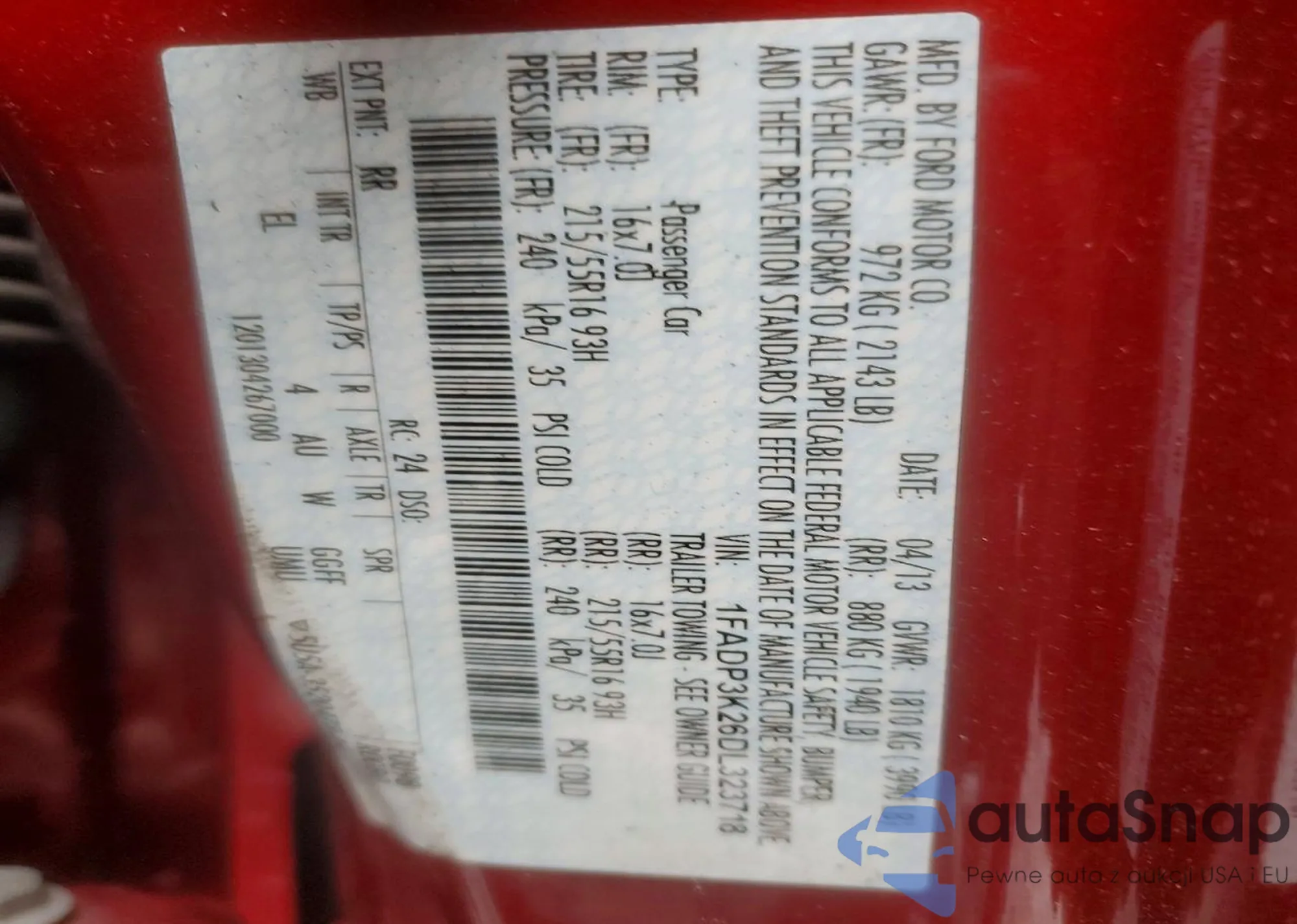 • VIN 1FADP3K26DL323718