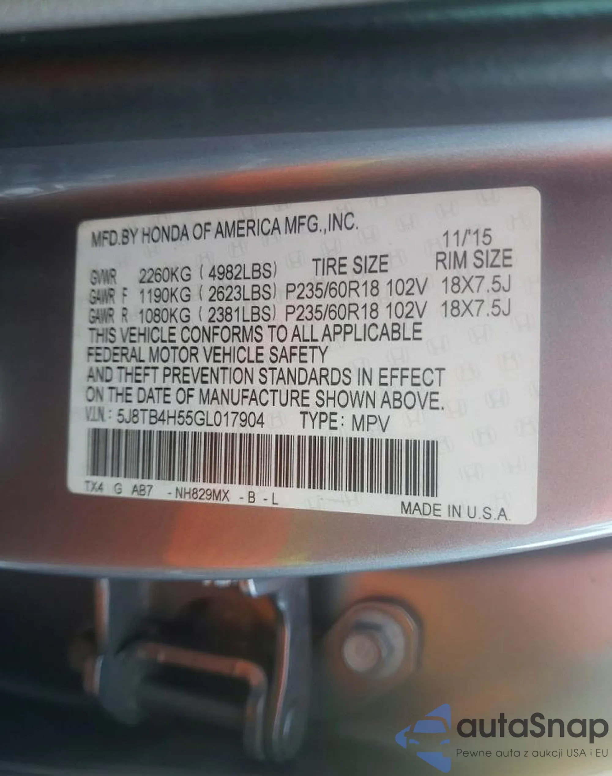 • VIN 5J8TB4H55GL017904
