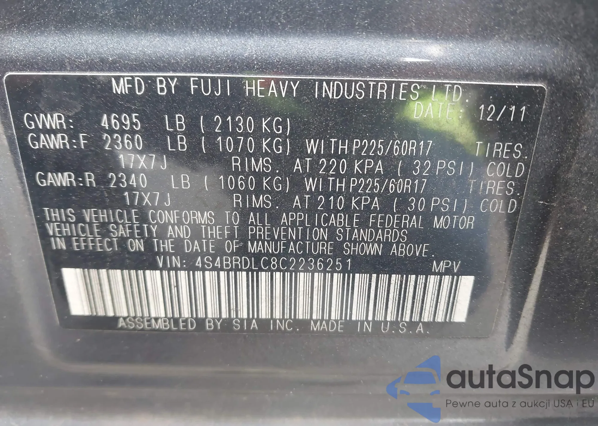 • VIN 4S4BRDLC8C2236251