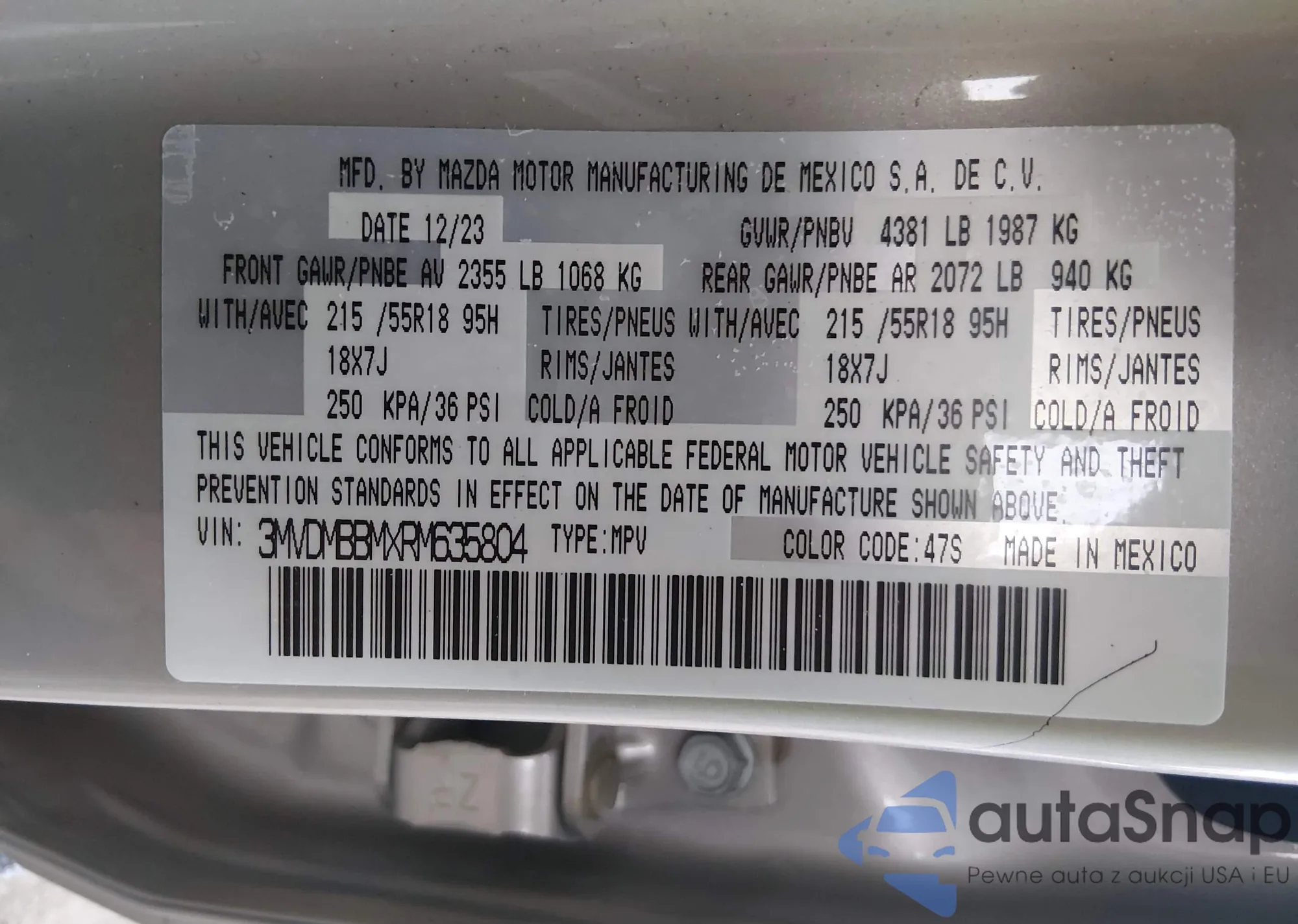 LOT: 44028093 VIN: JM3KFADL4H0192513