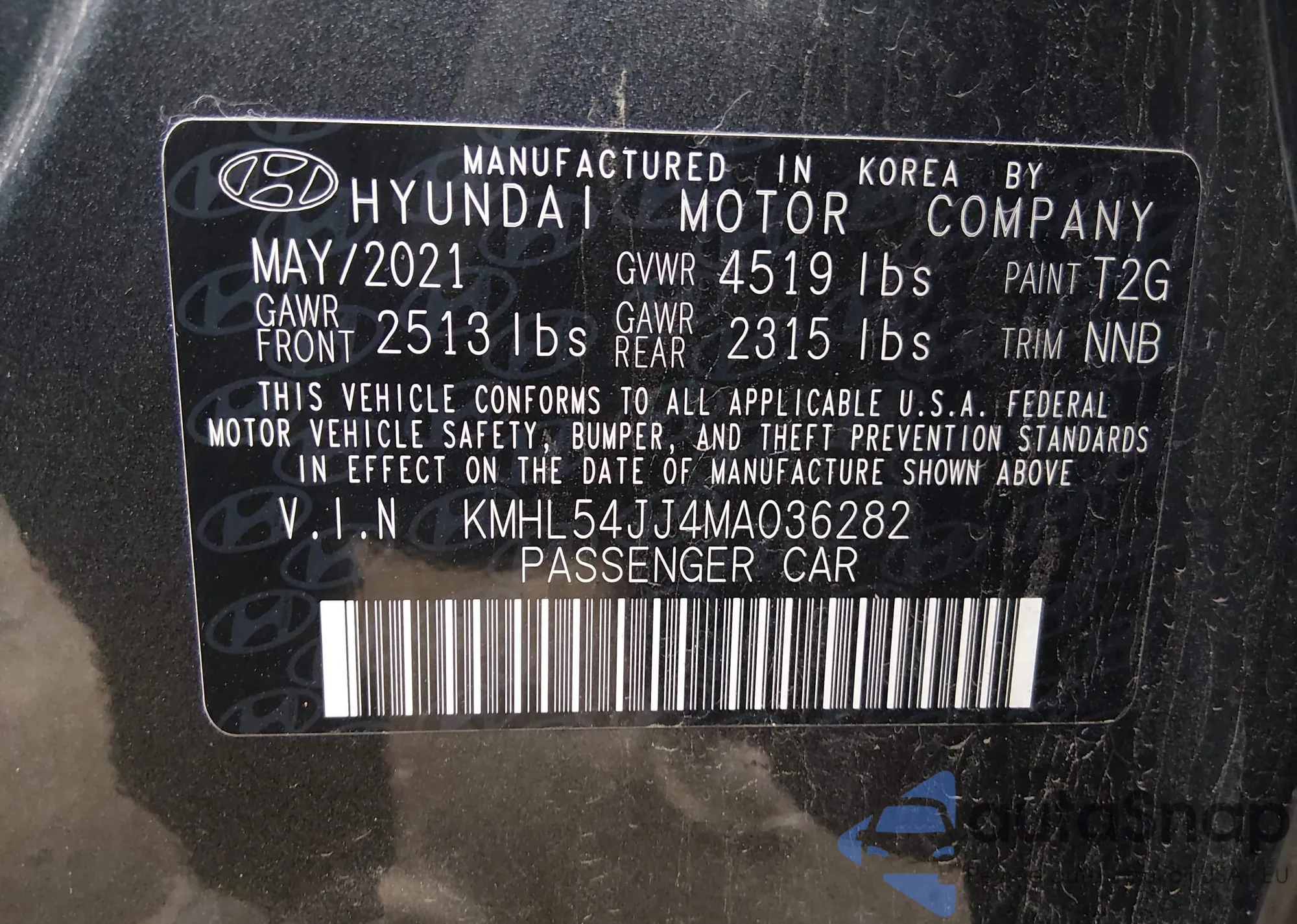 LOT: 44184389 VIN: KMHL54JJ4MA036282