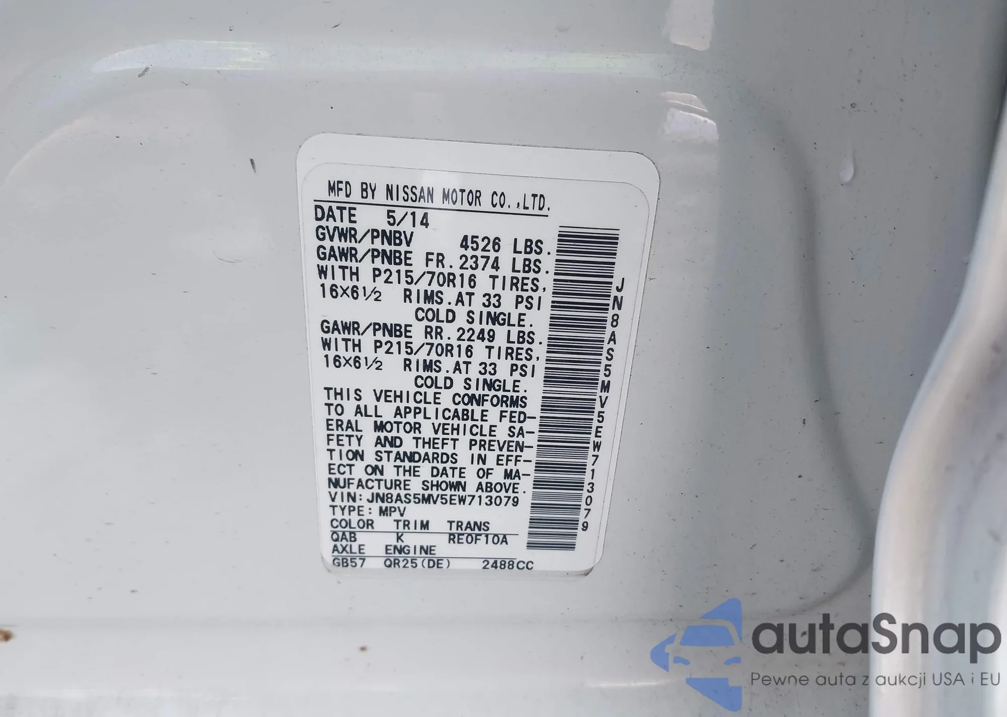 LOT: 43836704 VIN: JN8AS5MV5EW713079