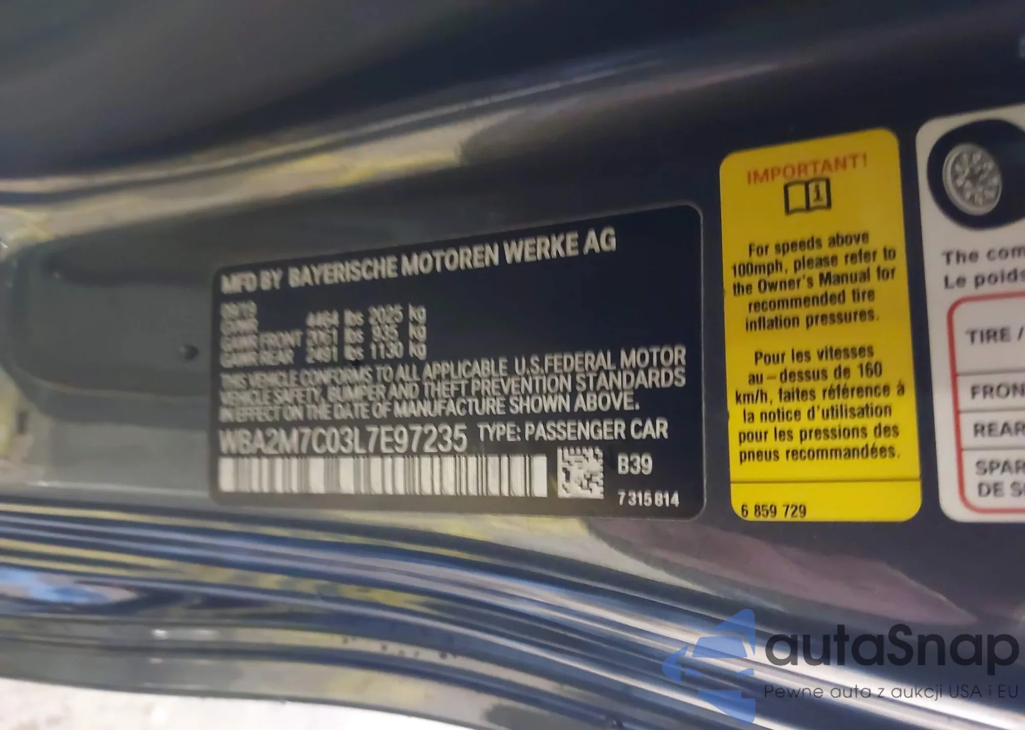• VIN WBA2M7C03L7E97235