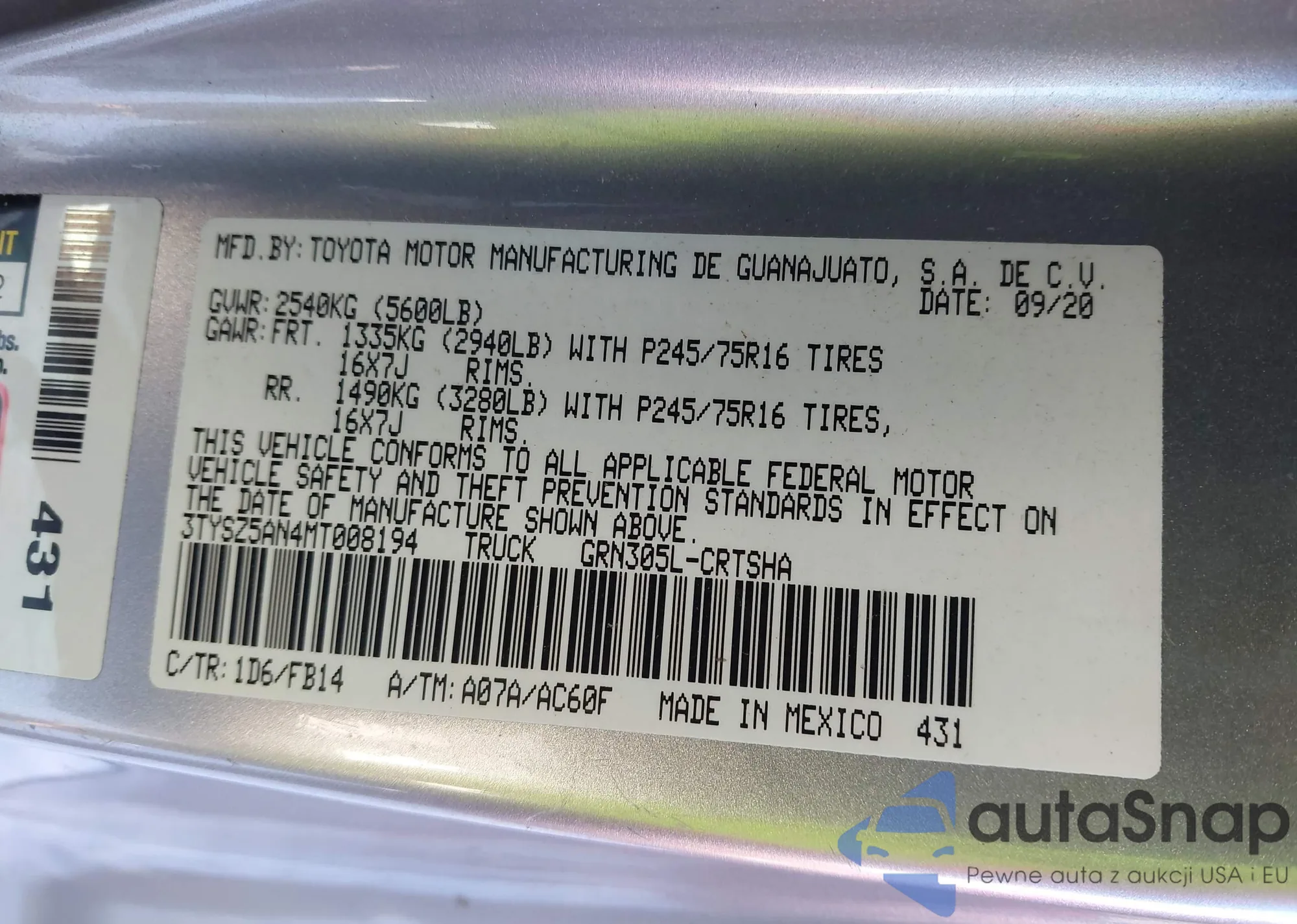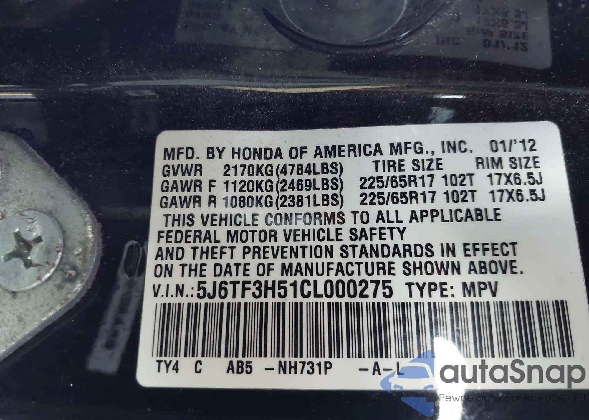 LOT: 44087936 VIN: 005J6TF3H51CL0002