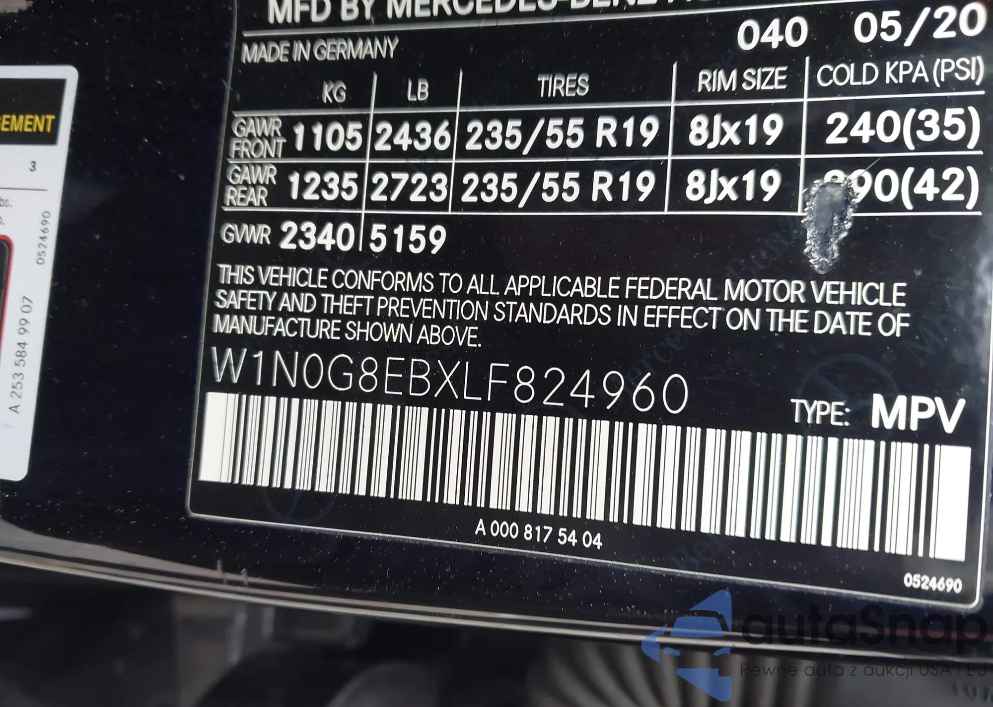 • VIN KNAG64J75S5272885
