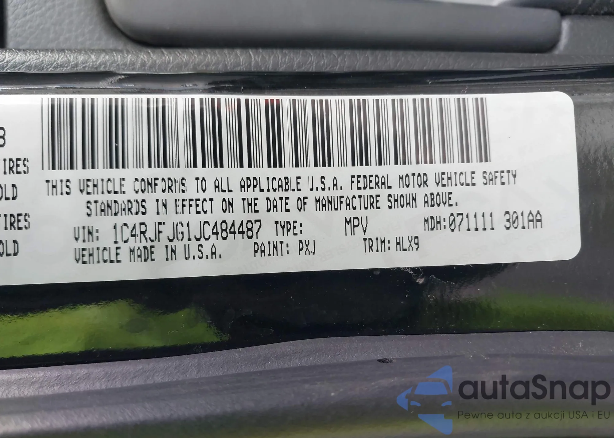 • VIN 1C4RJFJG1JC484487
