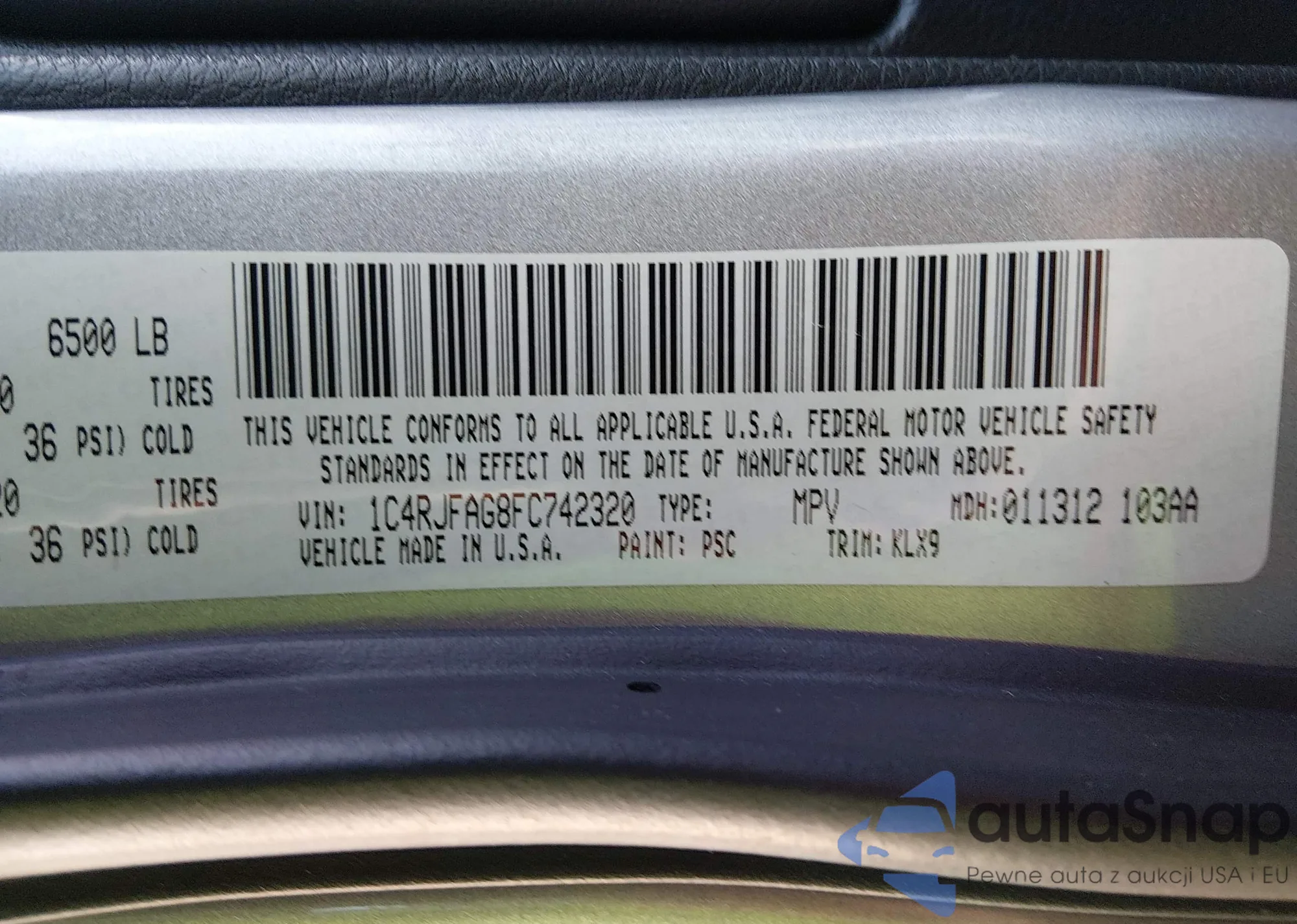 • VIN 1C4RJFAG8FC742320