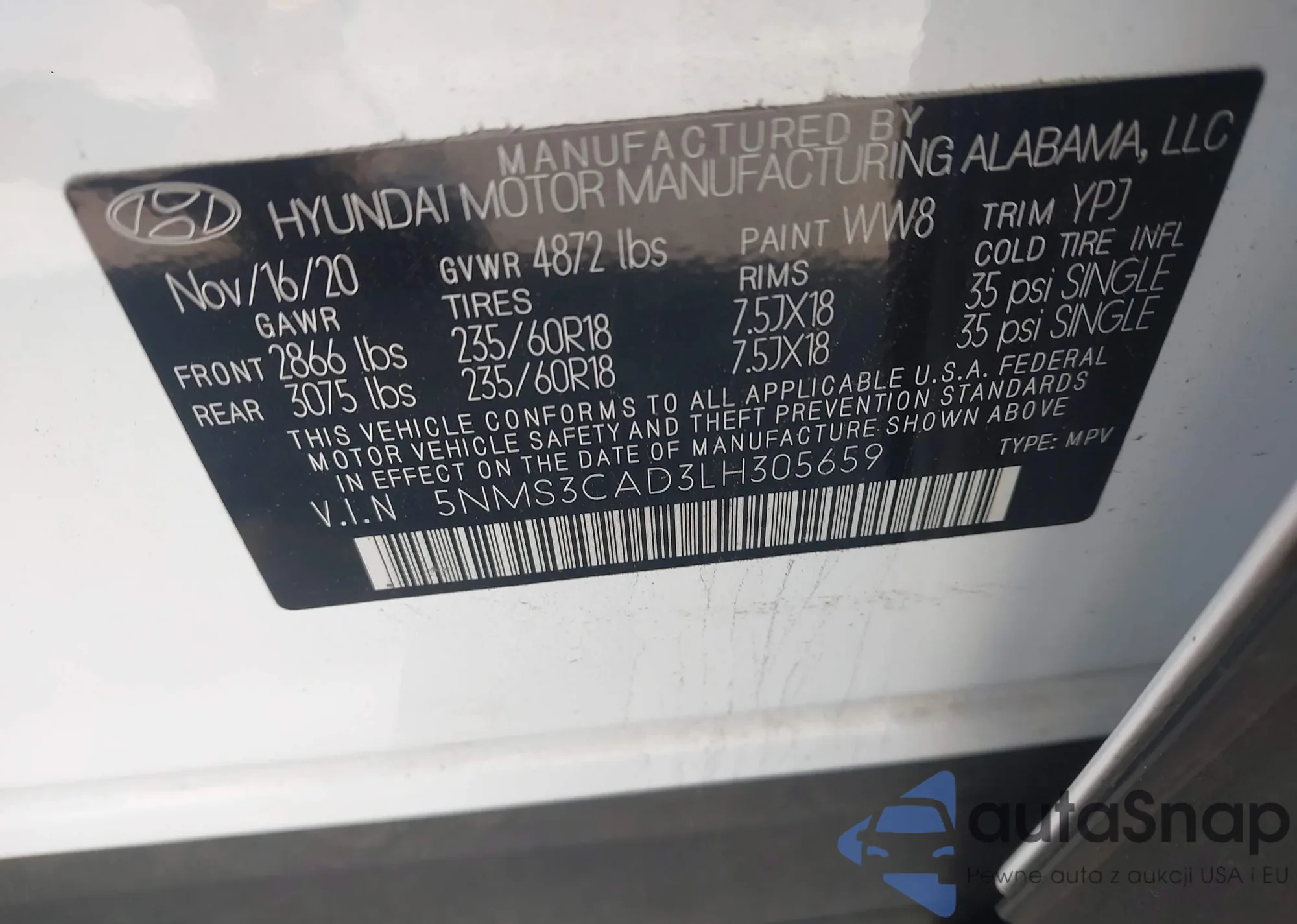 • VIN 5NMS3CAD3LH305659
