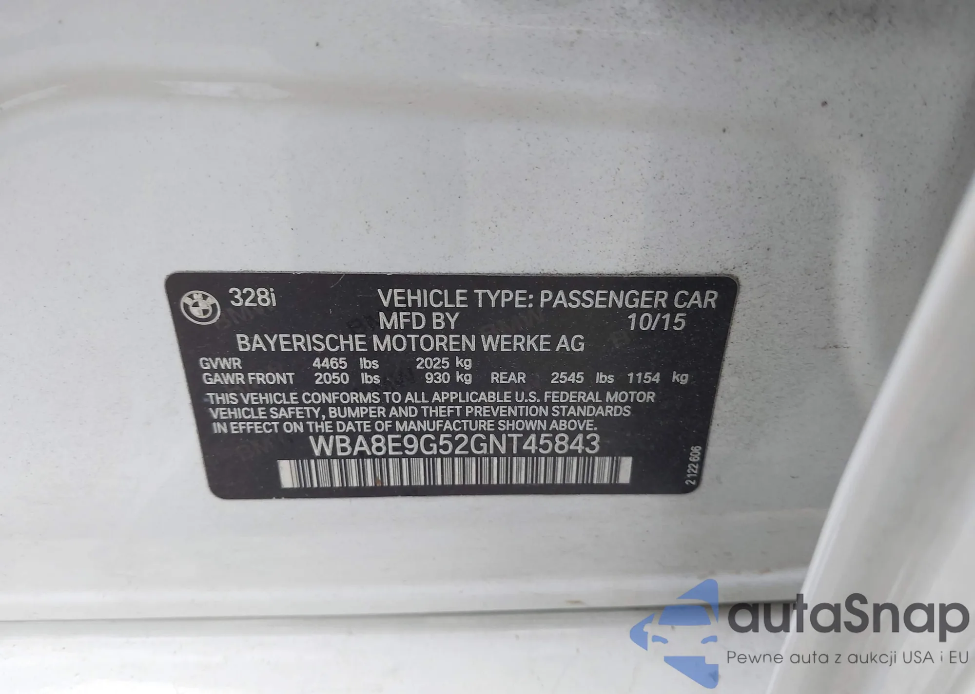 LOT: 43989598 VIN: WBA8E9G52GNT45843