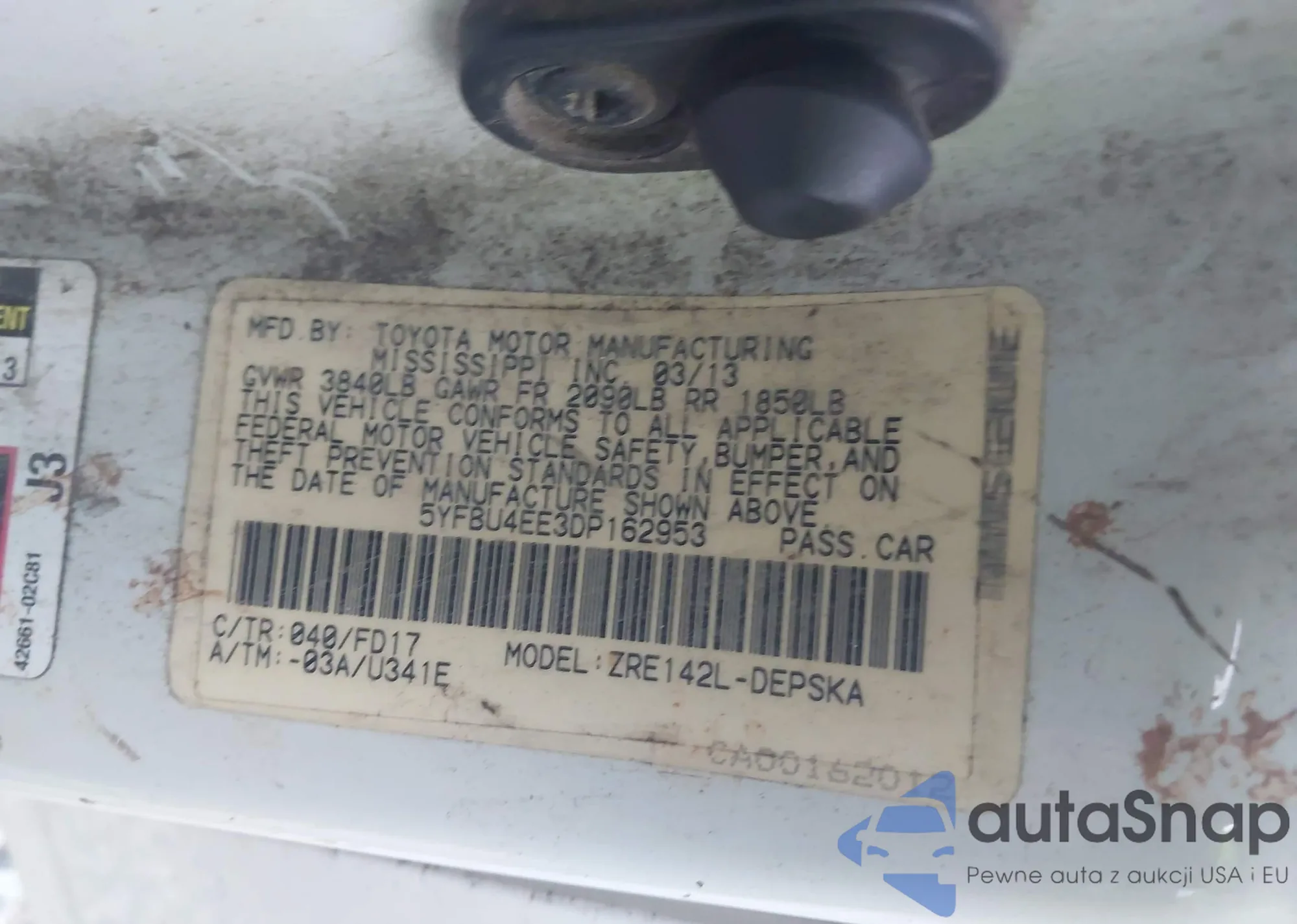 • VIN 5YFBU4EE3DP162953