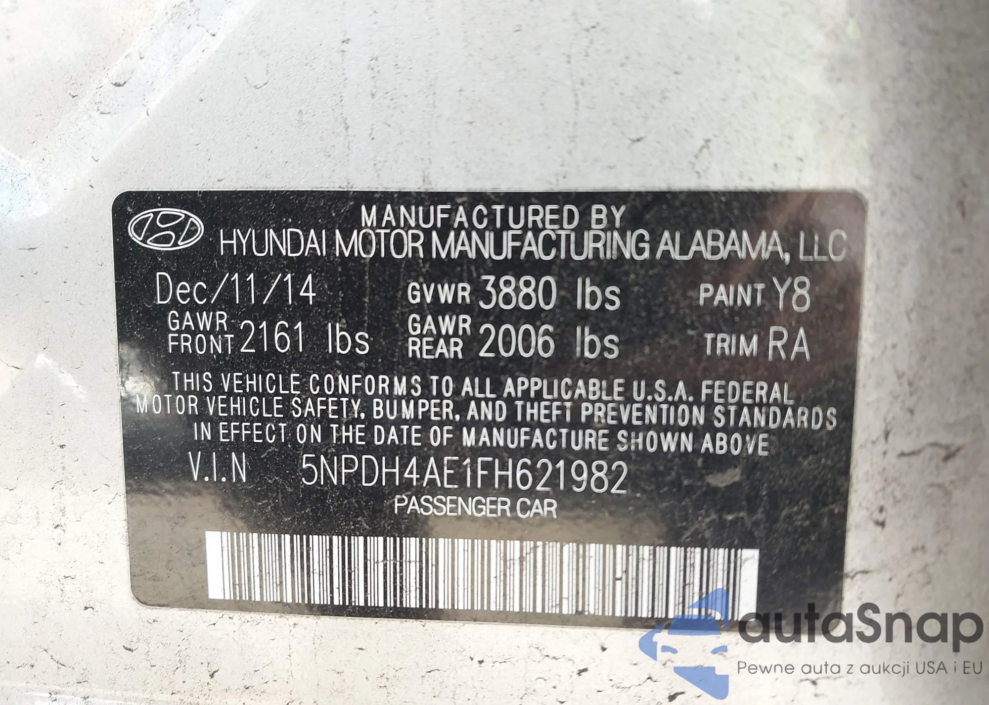 LOT: 43996550 VIN: 5NPDH4AE1FH621982