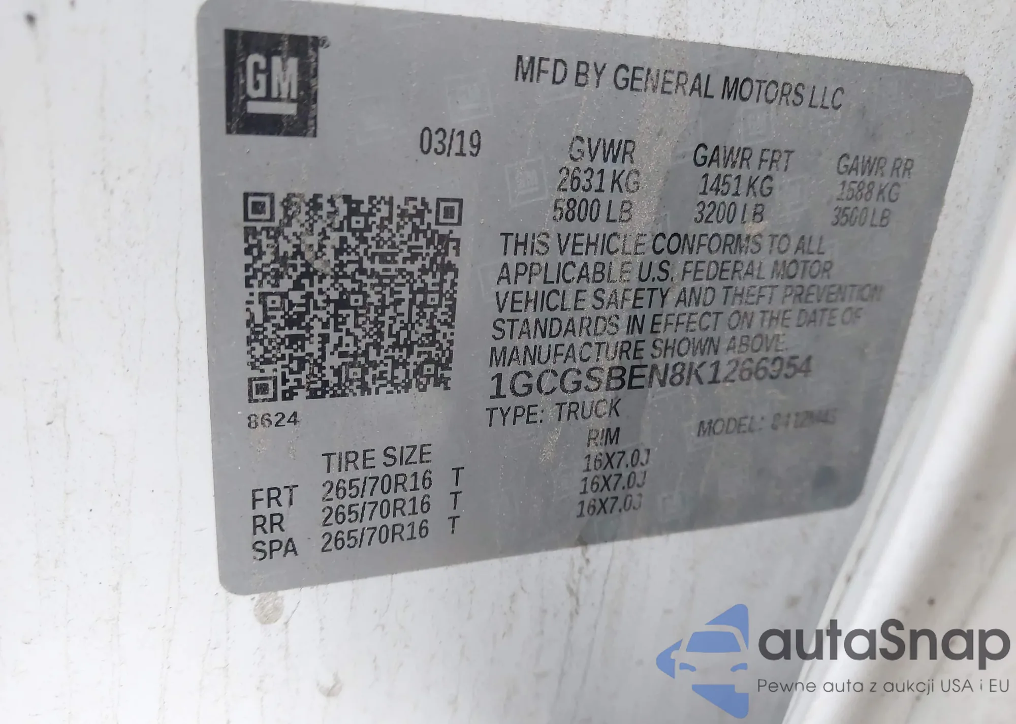 LOT: 43832074 VIN: 1GCGSBEN8K1266954