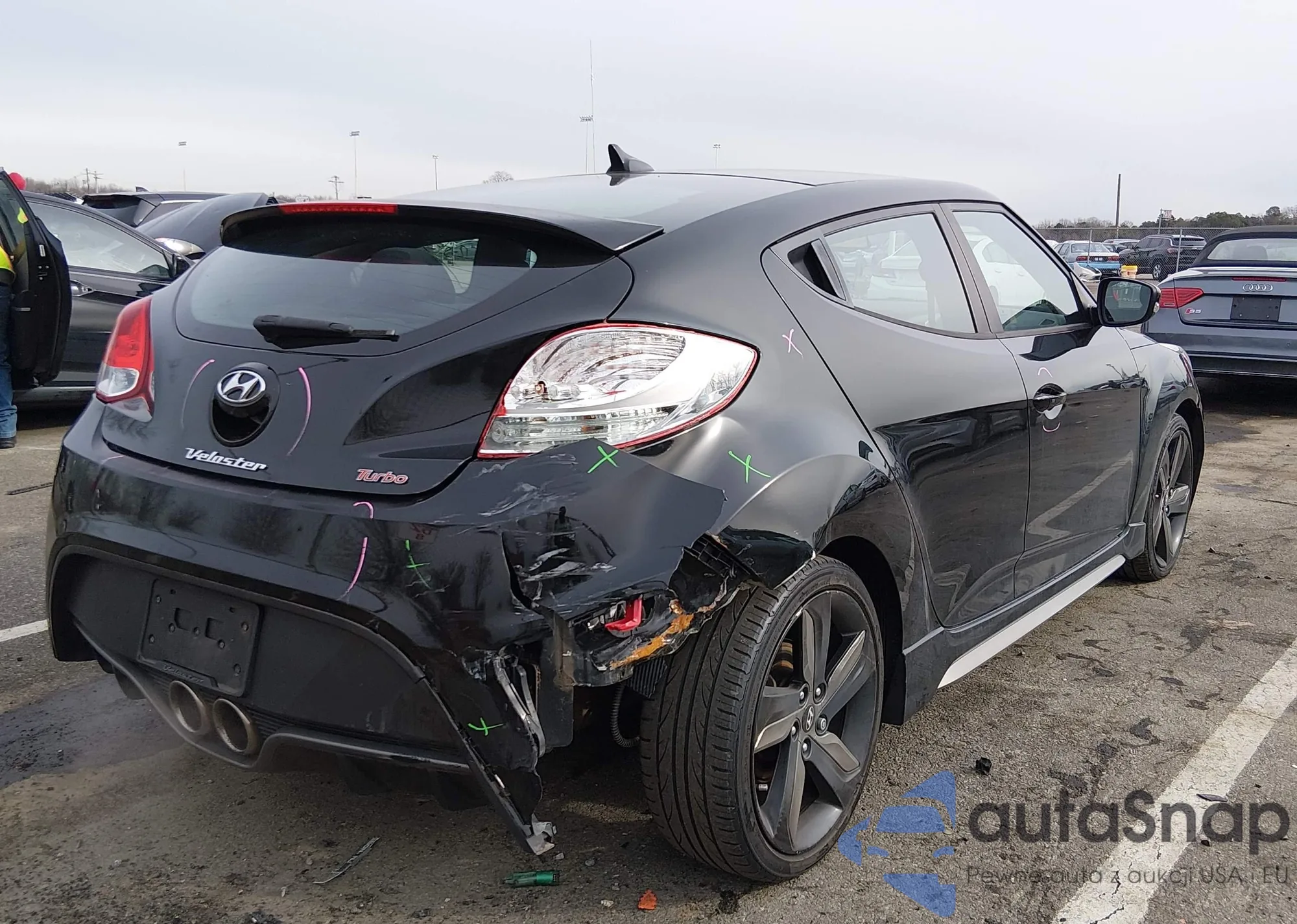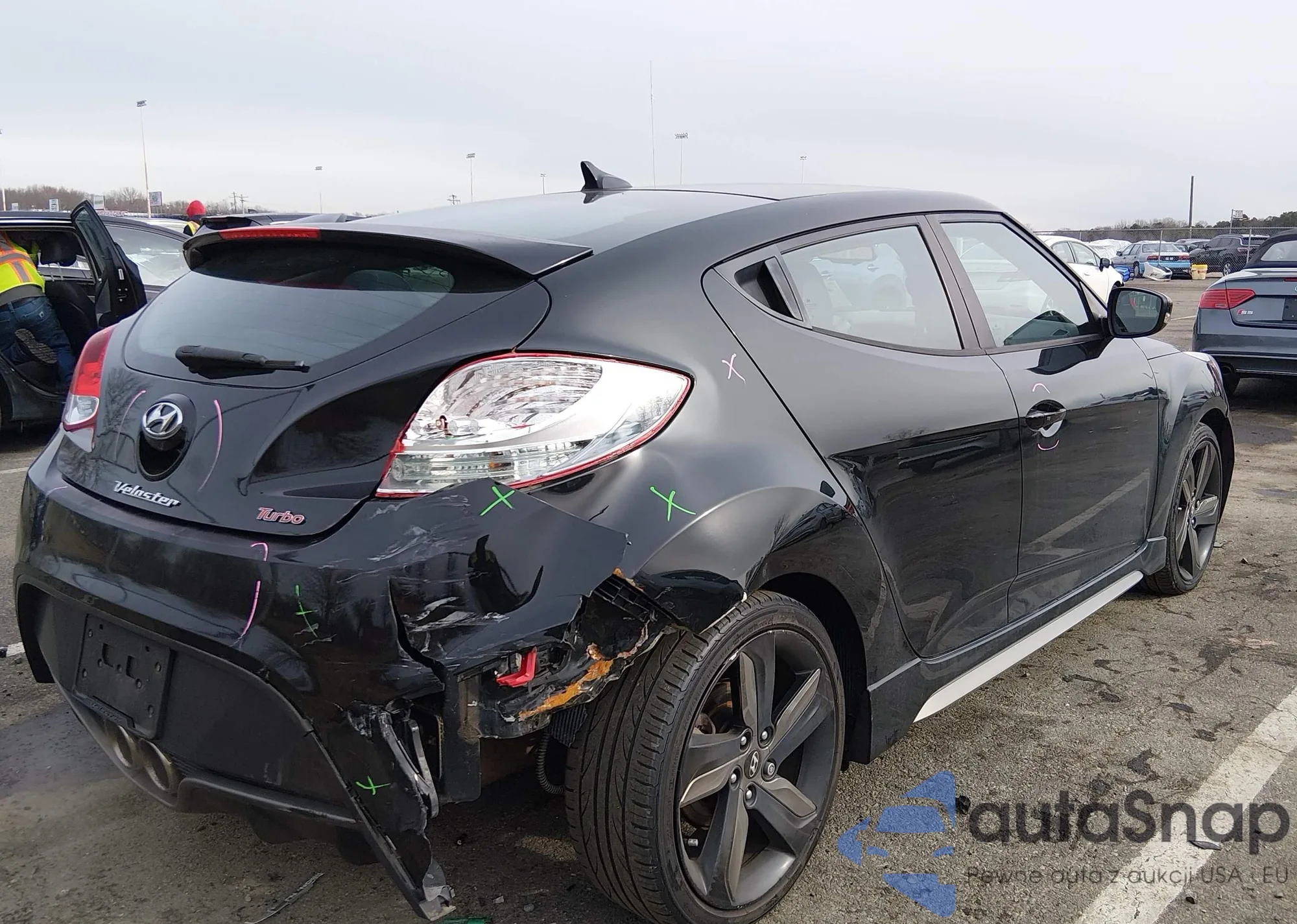 2013 Hyundai Veloster Turbo W/Black из США, поврежденный, VIN KMHTC6AE0DU156387