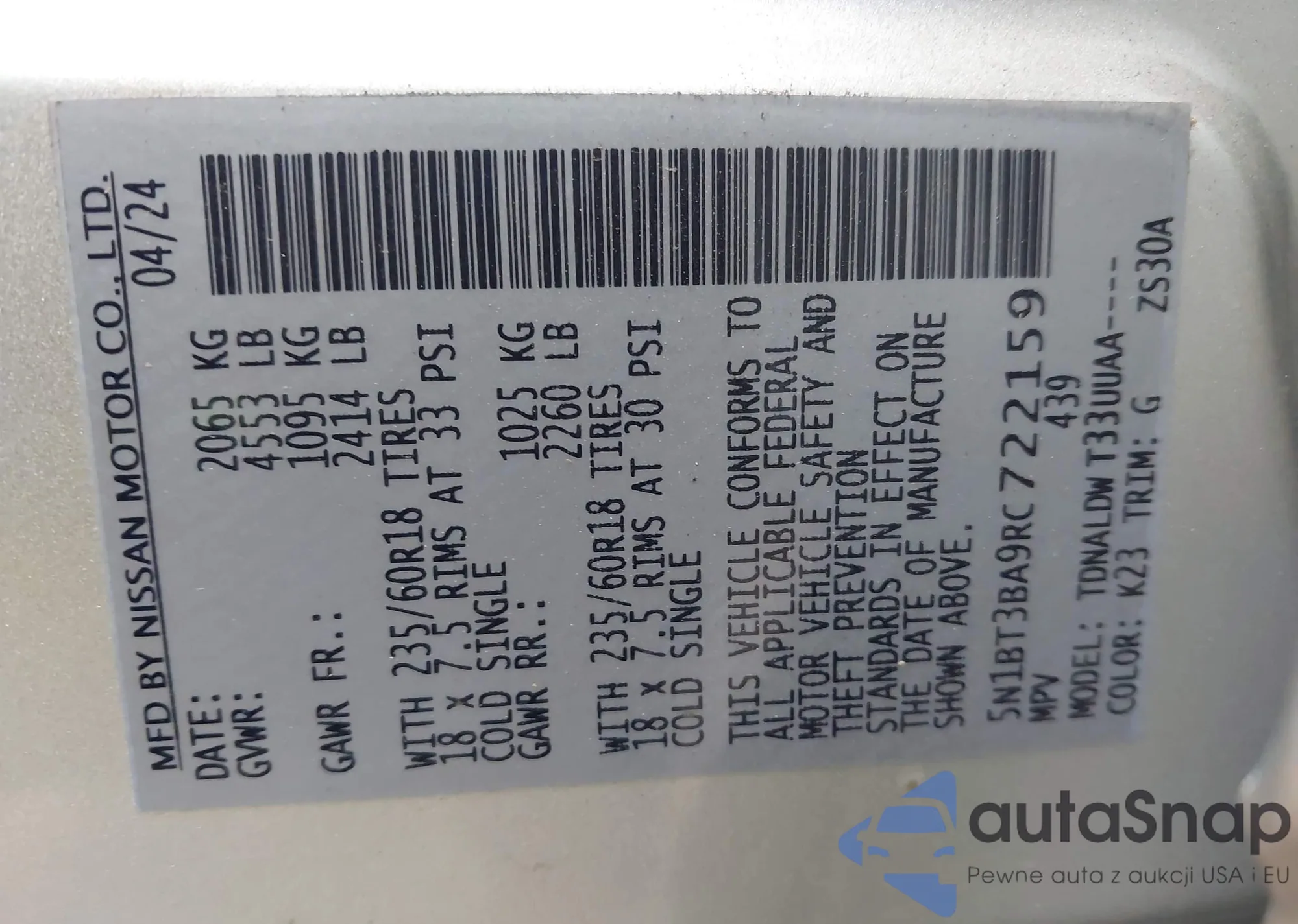 LOT: 44025853 VIN: KNMAT2MT1GP721313