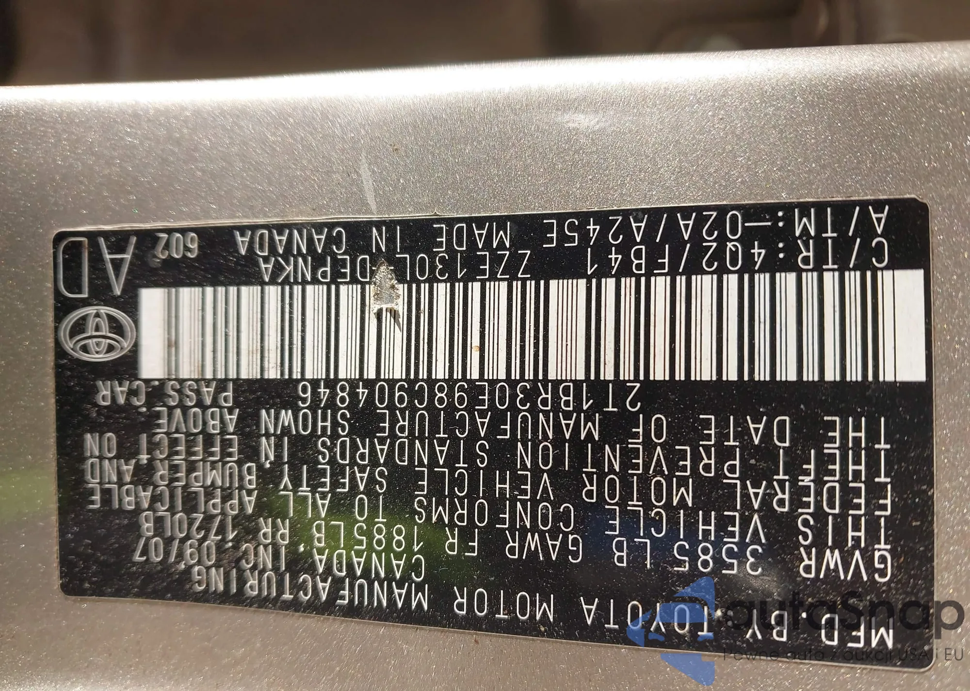 • VIN 2T1BR30E98C904846