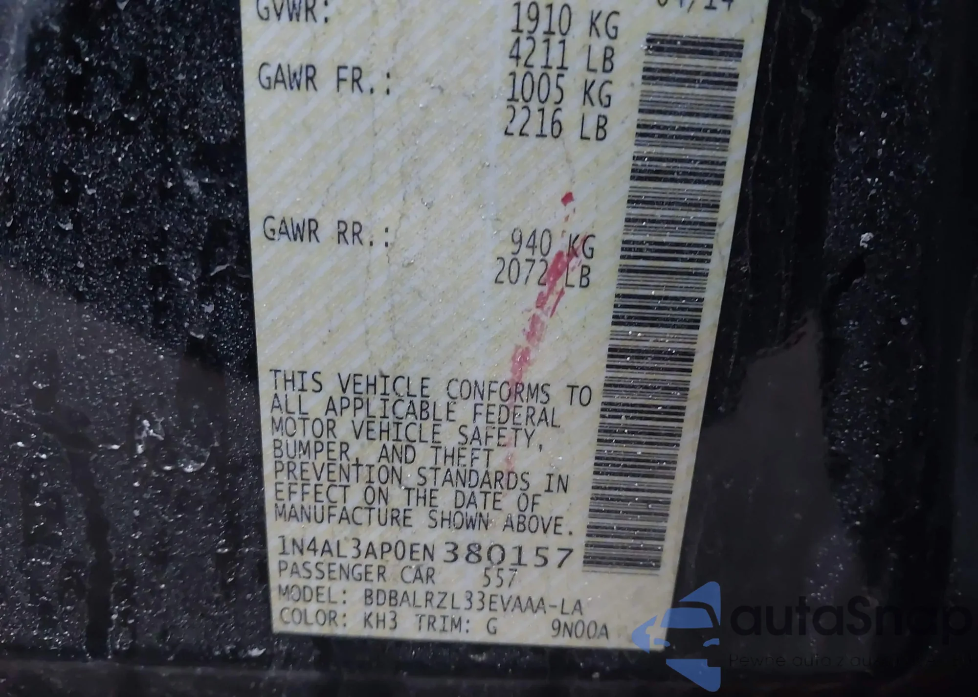 LOT: 44083241 VIN: 1N4AL3AP0EN380157