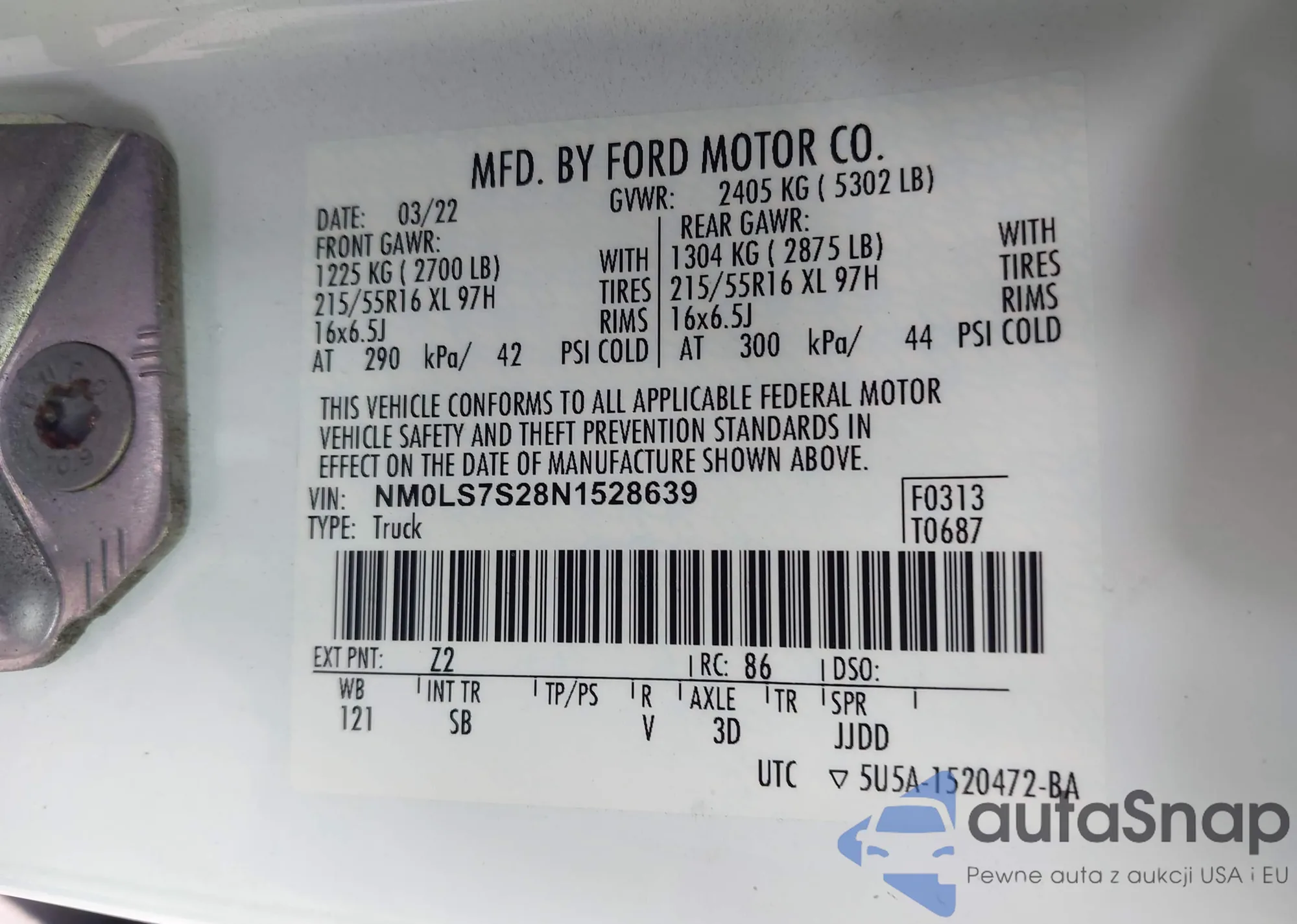 LOT: 43662440 VIN: NM0LS7S28N1528639