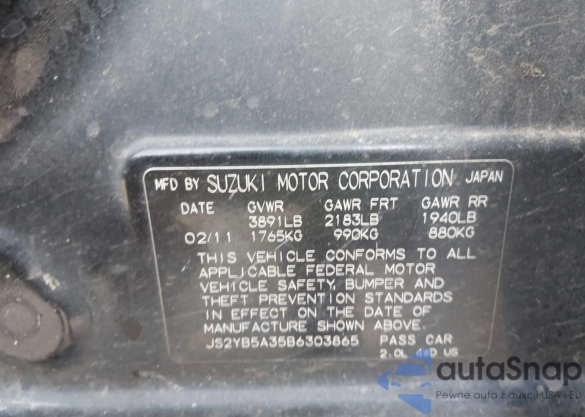 • VIN JS2YB5A35B6303865