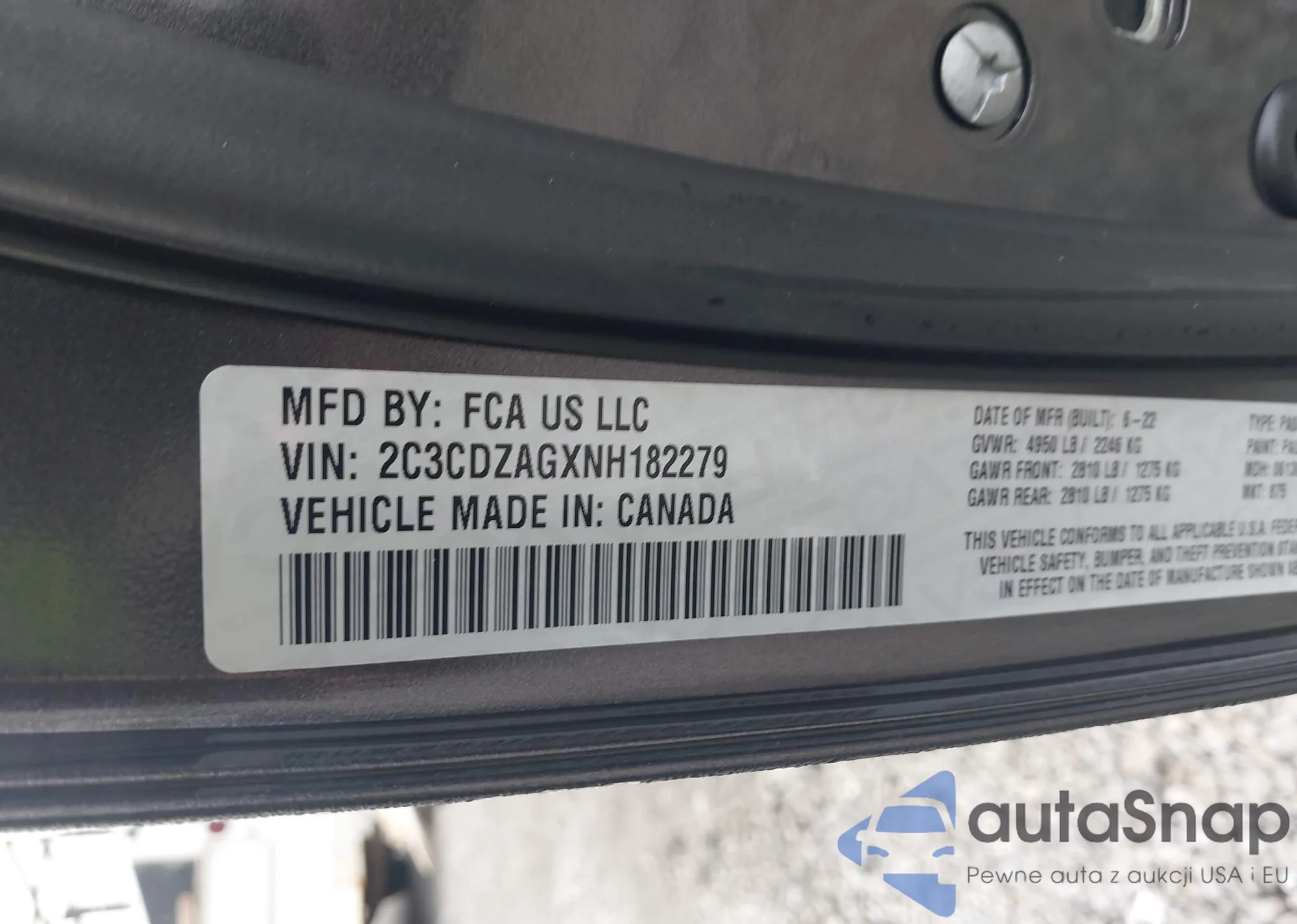• VIN 2C3CDZAGXNH182279
