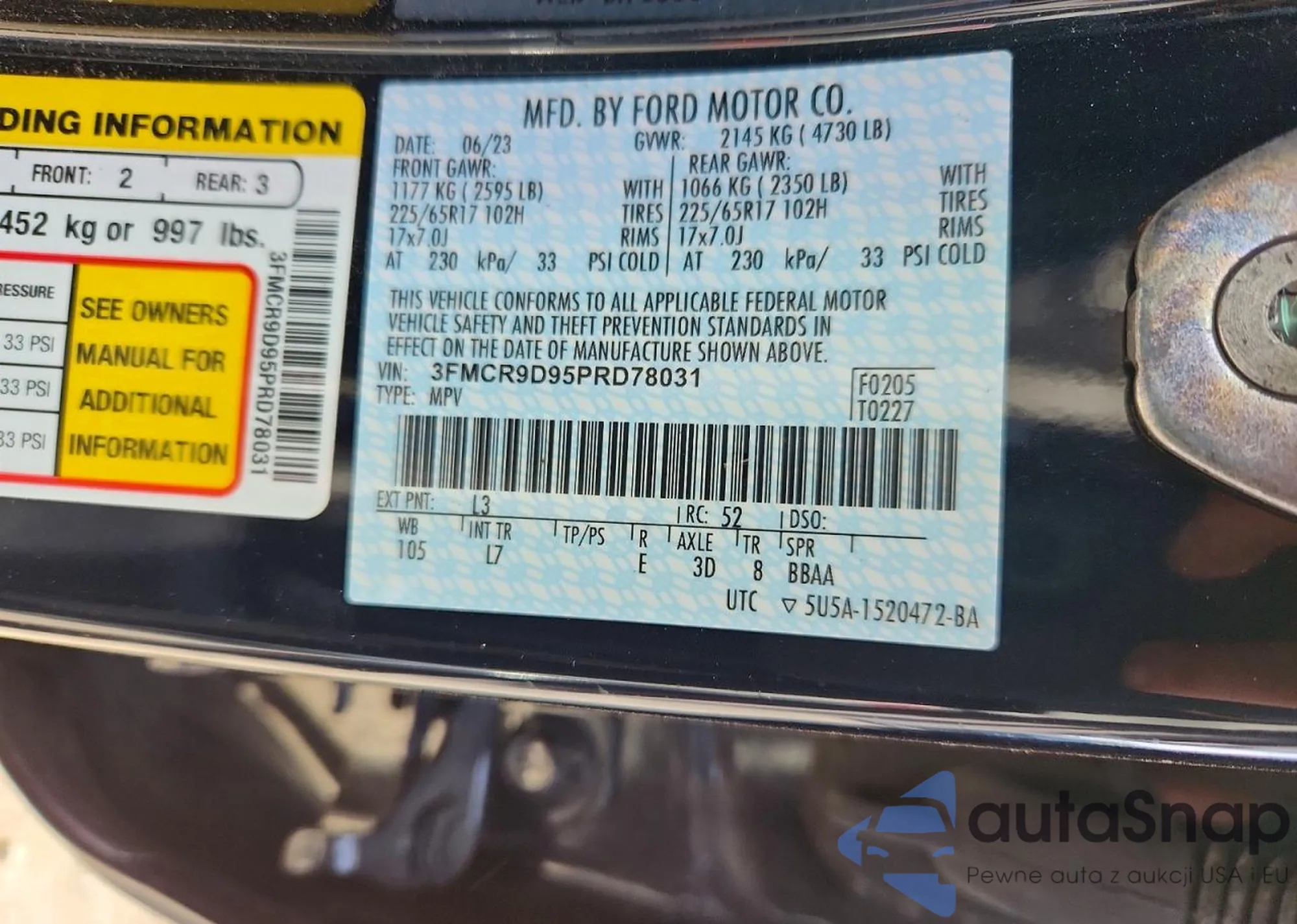 LOT: 72697065 VIN: 3FMCR9D95PRD78031