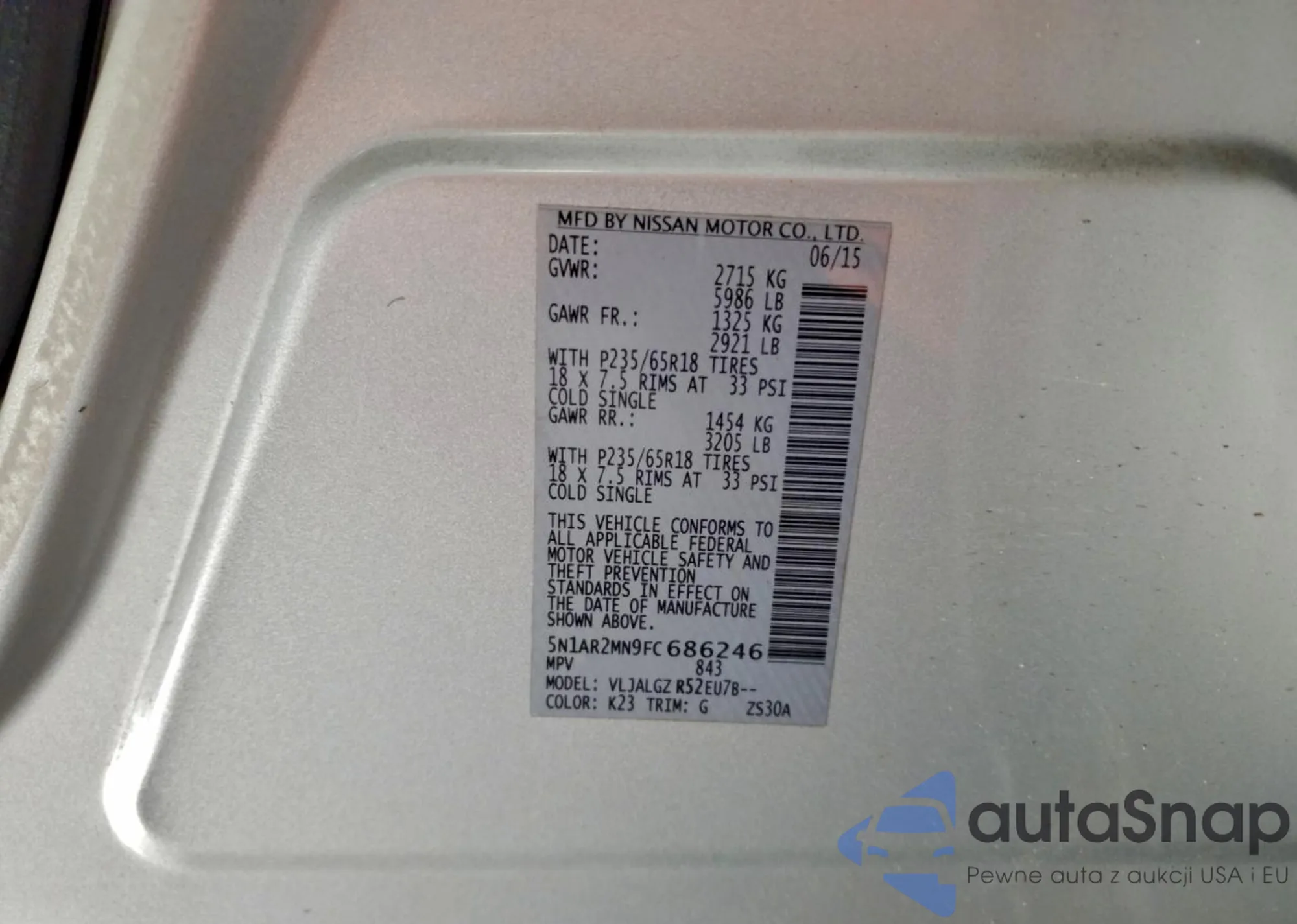 LOT: 96063195 VIN: 5N1AR2MN9FC686246